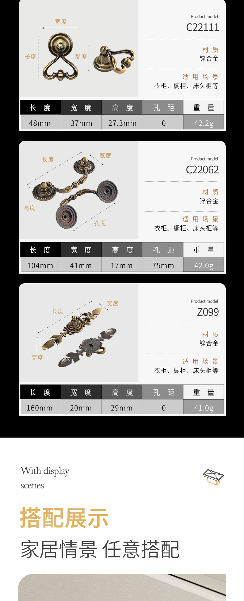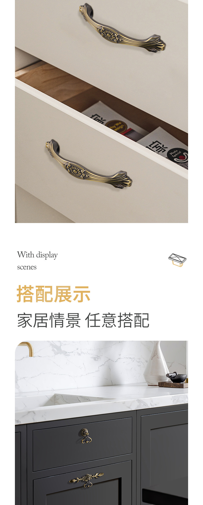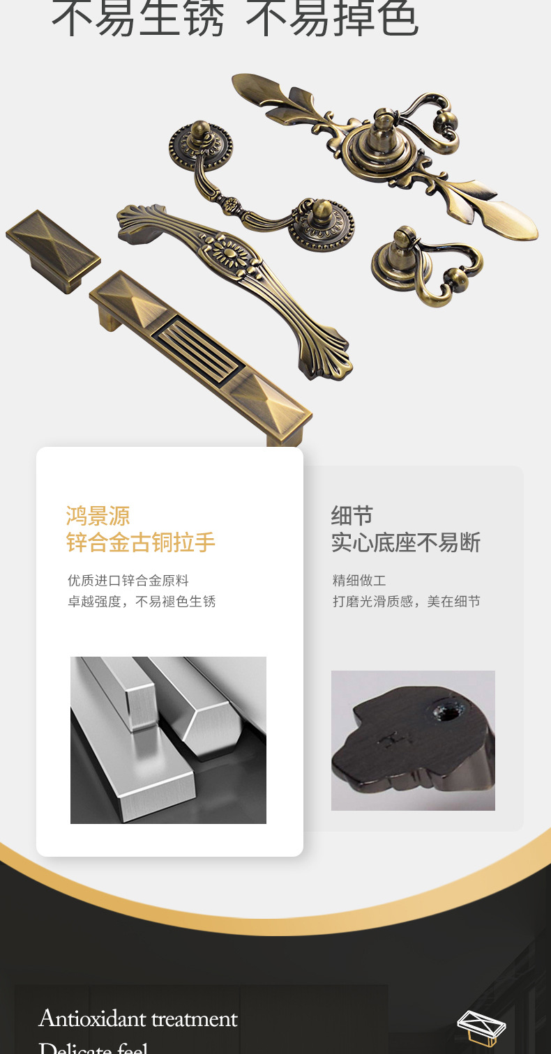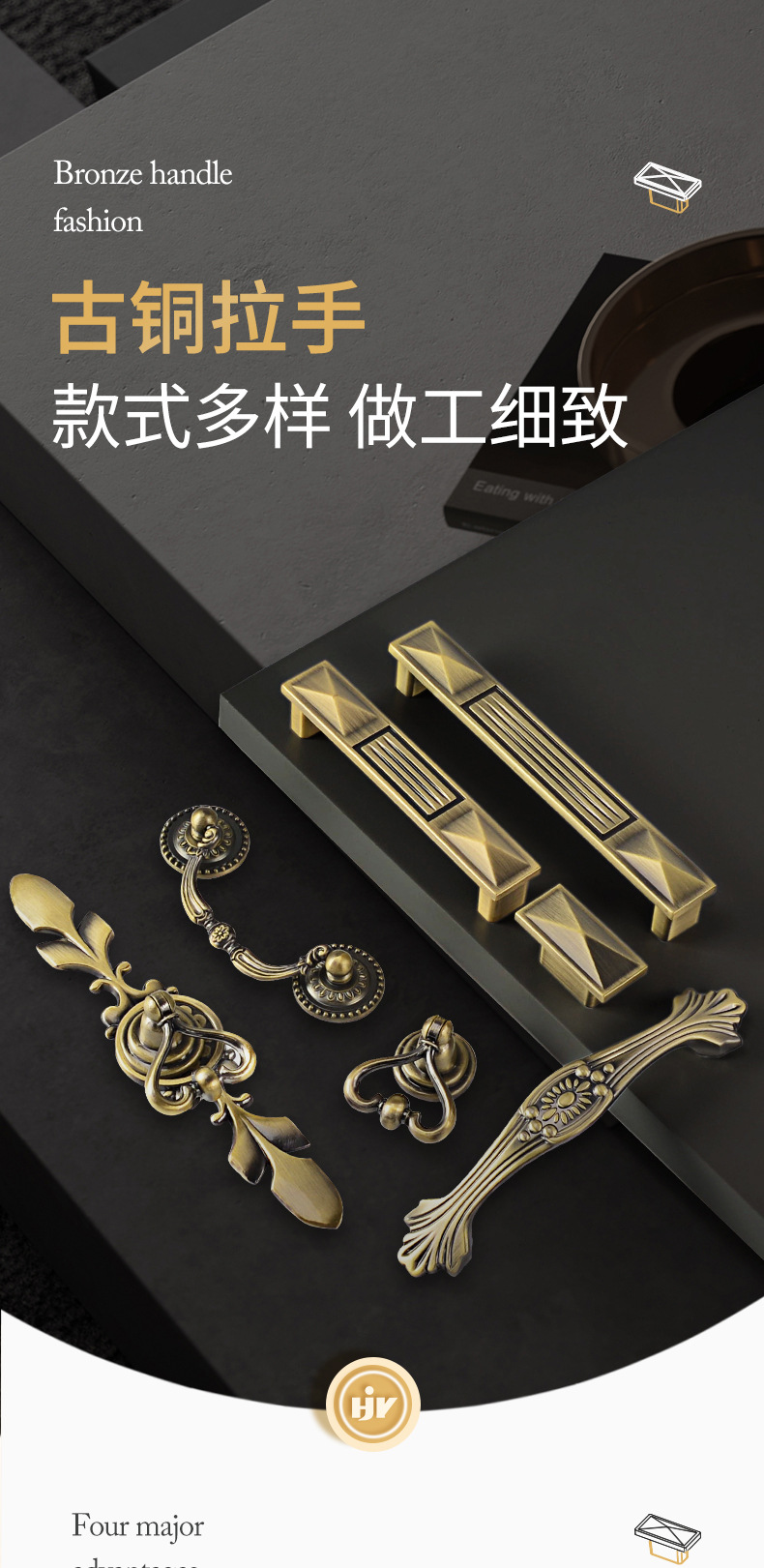 法式复古衣柜门橱柜把手青古铜色锌合金家具五金配件柜子抽屉拉手