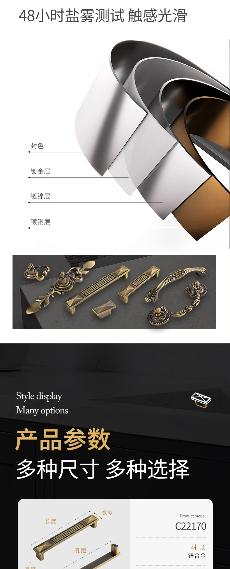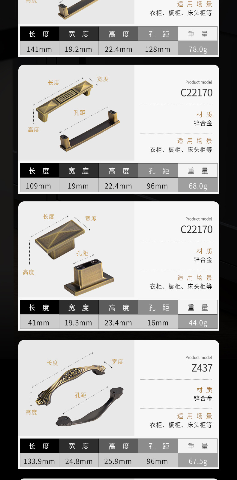 厂家直销轻奢黄古铜衣柜拉手衣橱柜门抽屉法式门把手中古风小单孔