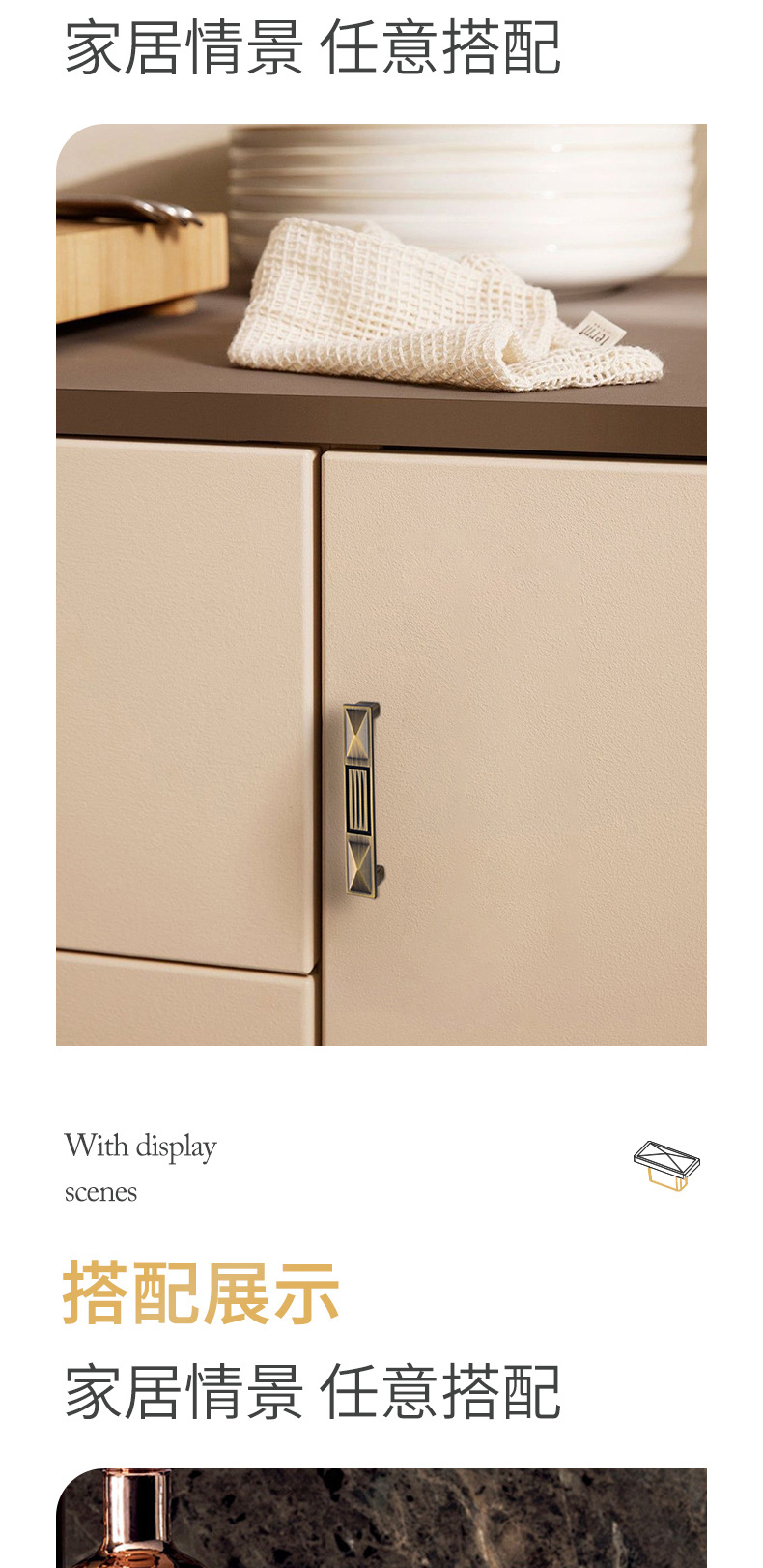 現代のシンプルなサイドに取っ手のタンスの扉を入れて、長い取っ手のタンスの引き出しを隠します。