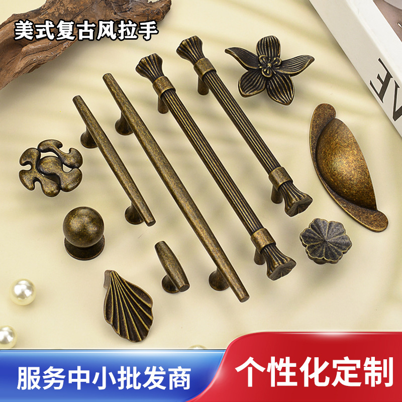 レトロなスタイルの家具ハードウェアアクセサリーワードローブキャビネットドアハンドルブロンズ引き出しキャビネット亜鉛合金キャビネットハンドル