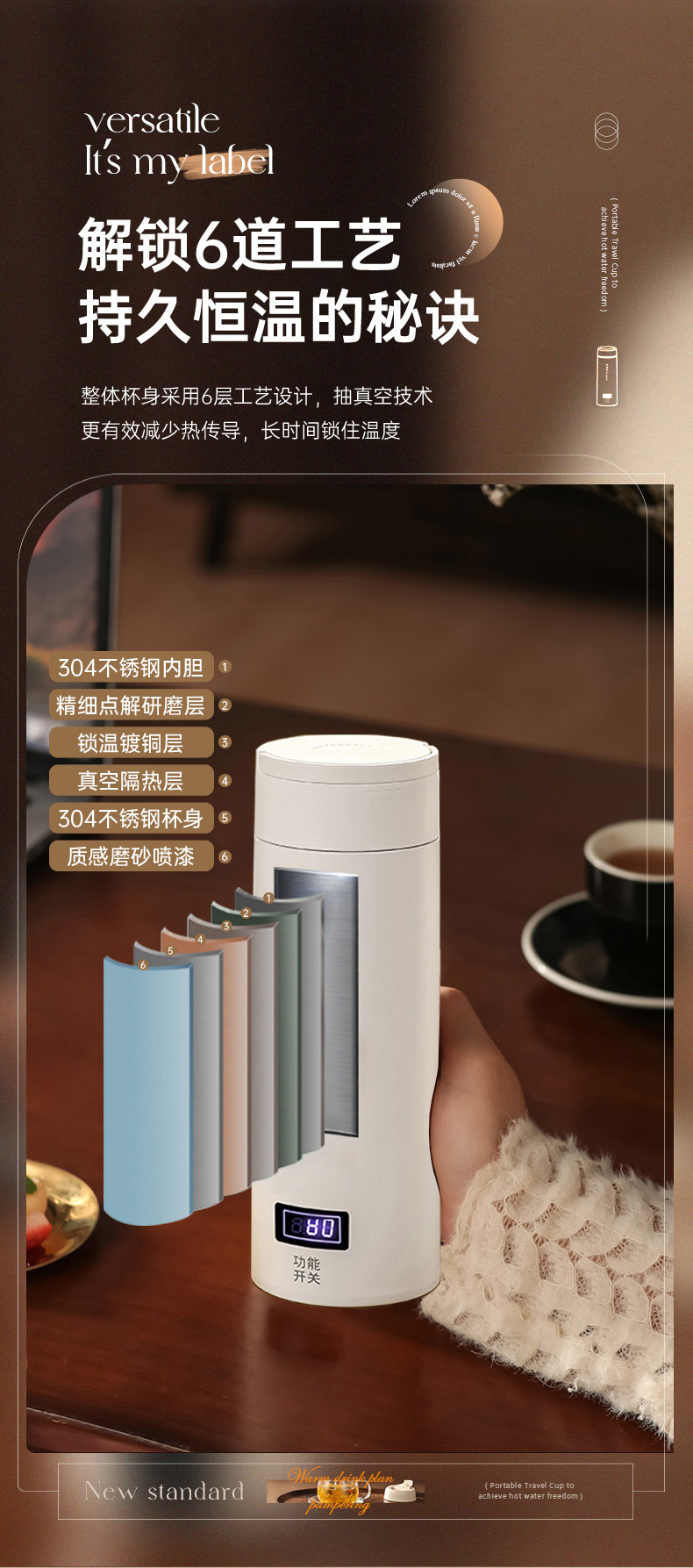 志高電熱カップ携帯型小型養生ポット電気加熱カップ保温恒温一体湯たんぽ保温カップ
