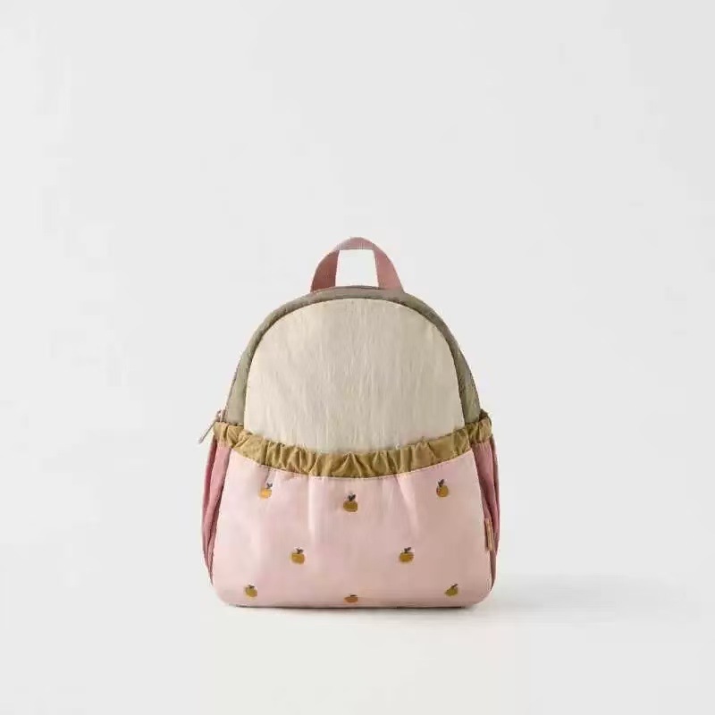 ∂儿童新款双肩包拼色苹果刺绣可爱背包幼儿园书包轻便出游双肩背