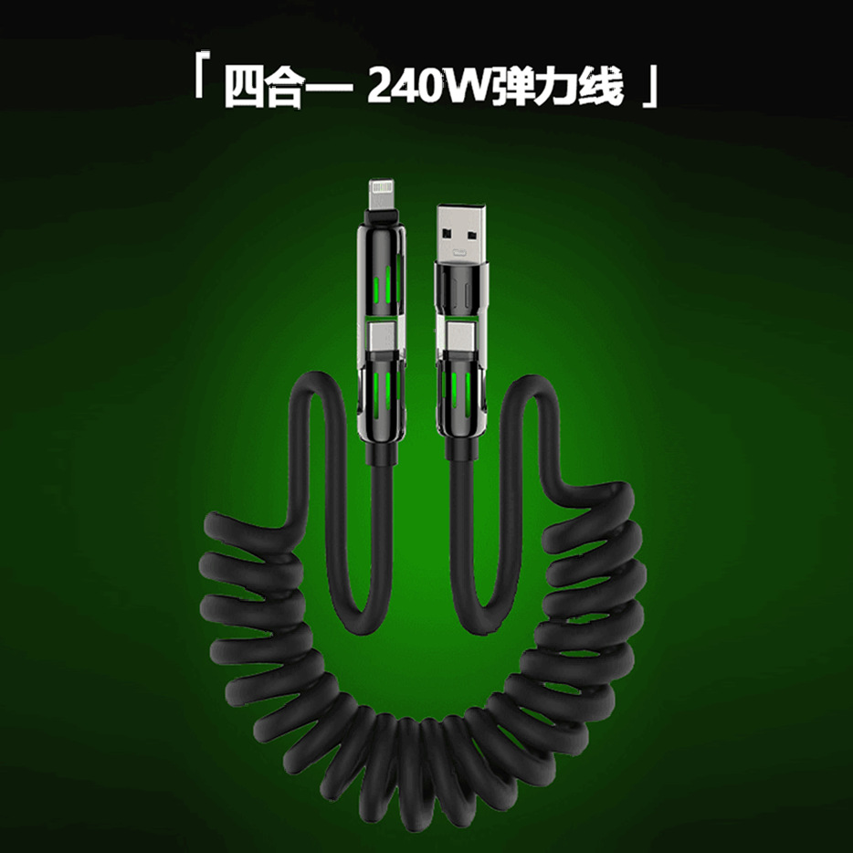 【TK人気商品高品質】Beimo 65+27W スプリング式4in1急速充電ケーブル Apple/Huawei対応データケーブル