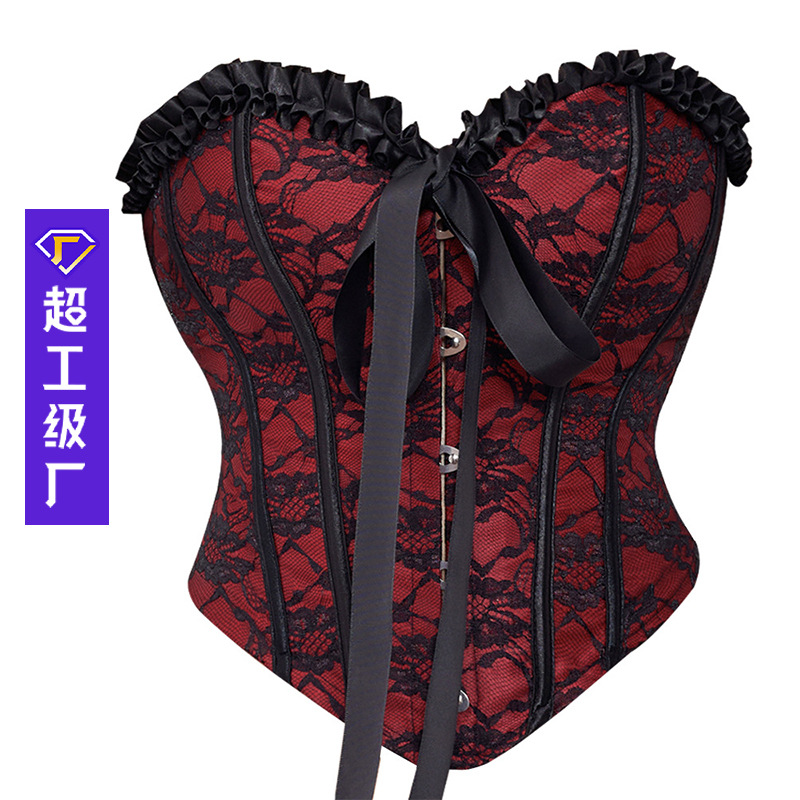 跨境欧美宫廷束身衣荷叶边鱼骨胸衣外穿抹胸束腰塑身上衣外贸货源
