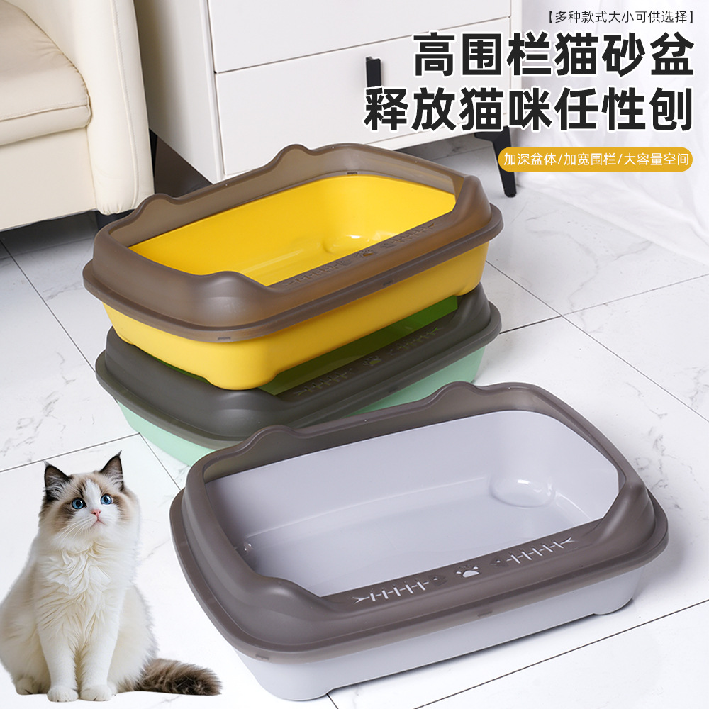 26年新型猫トイレペット用品、高柵半密閉型、飛び散り防止、厚みのあるPP素材、猫耳付き猫トイレ