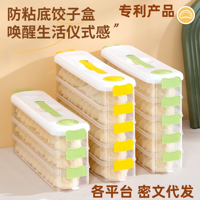家用大容量饺子冷冻手提保鲜盒冰箱专用速冻饺子多层带计时收纳盒