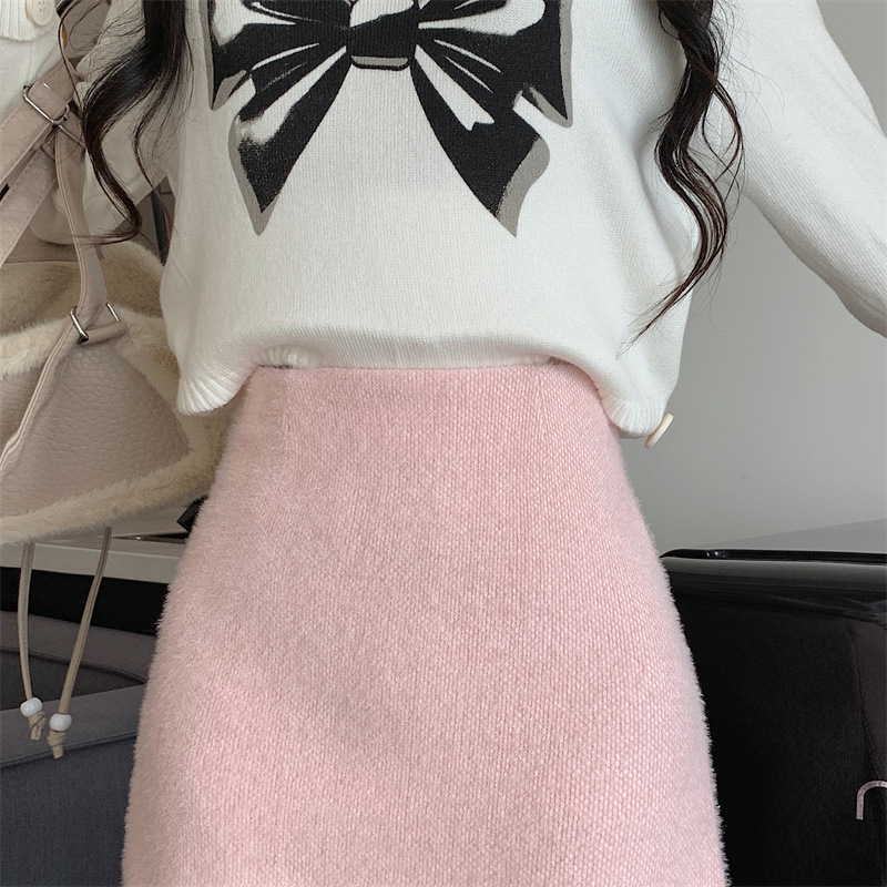 大きいサイズの婦人服の冬のスーツの女性の2024の新型はやせている韓系の交差するセーターの腰の半身のスカートの2つのセットの潮が見えます。