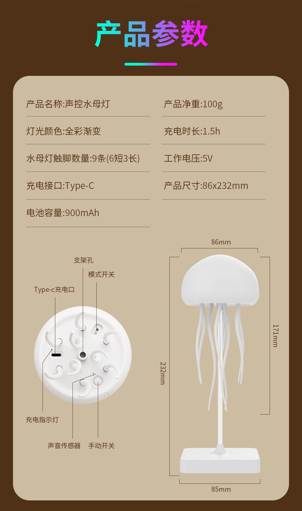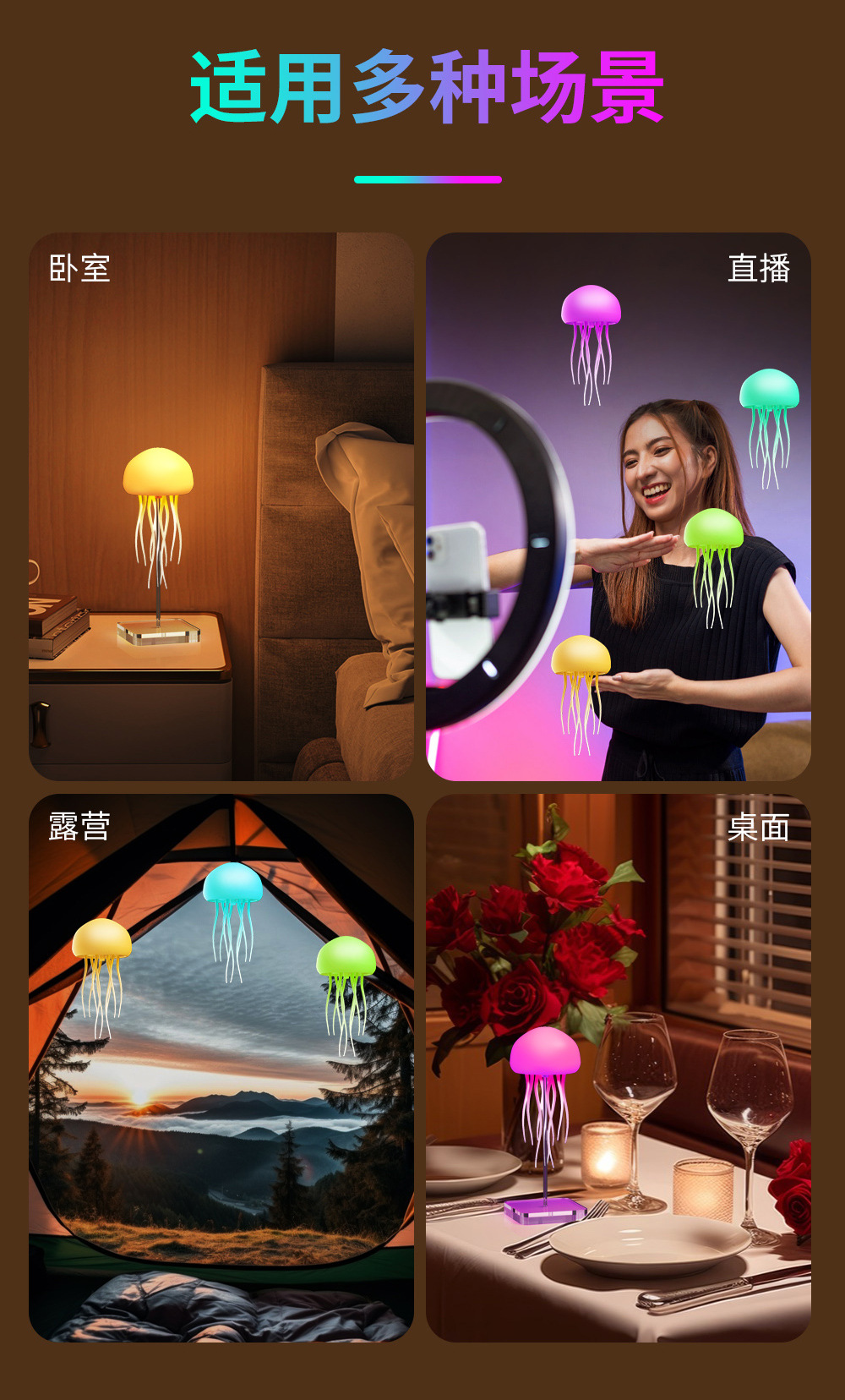 遊泳の音制御水母灯フルカラーグラデーション感応雰囲気灯浮遊霊動触角創意灯内蔵電池