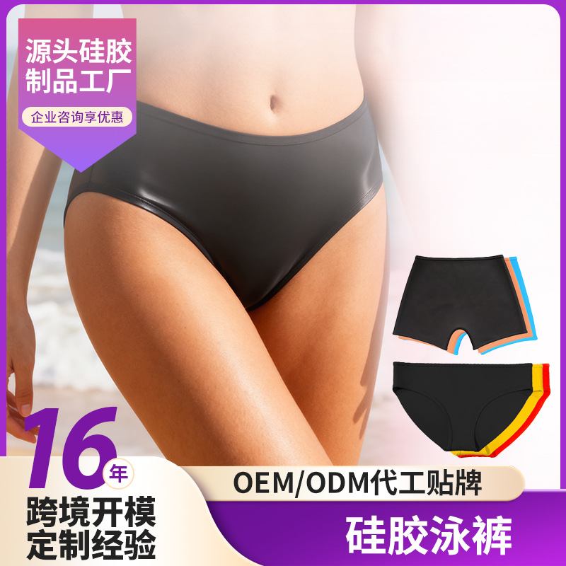 亚马逊硅胶男女泳裤私密平角无痕短内裤海边温泉游泳四角三角泳裤