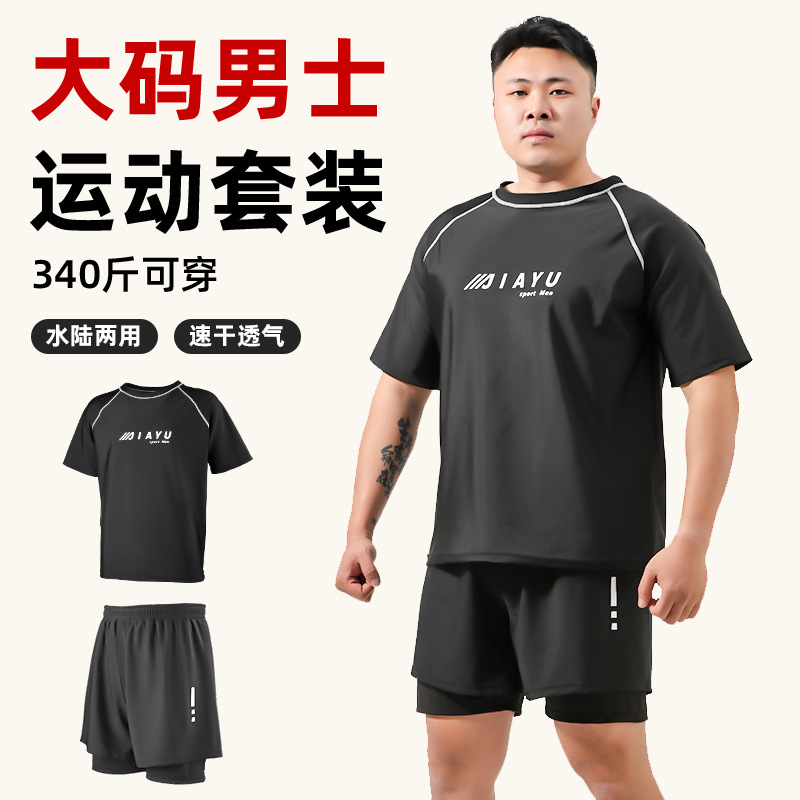 2025年 大きいサイズ水着 メンズ水泳トップス 半袖セット 特大サイズ 太った人向け 恥ずかしさ防止 大きいサイズ水着パンツ