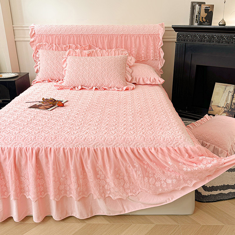 宝宝绒夹棉床裙单件冬季加绒加厚防滑家用床套床罩三件套四季通用