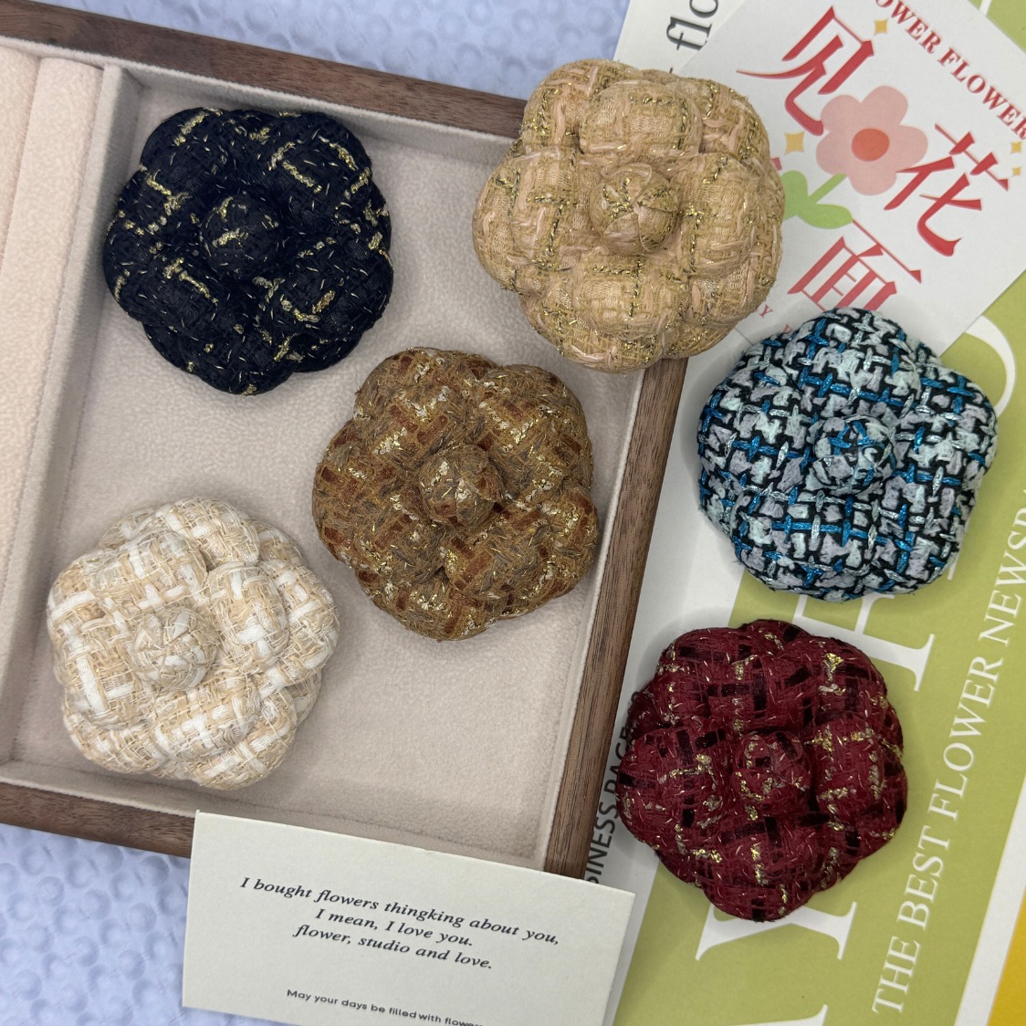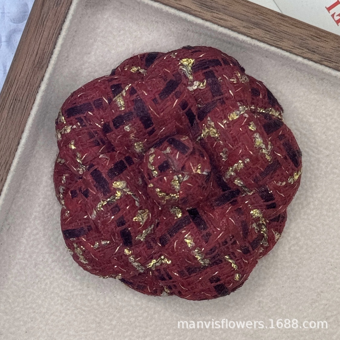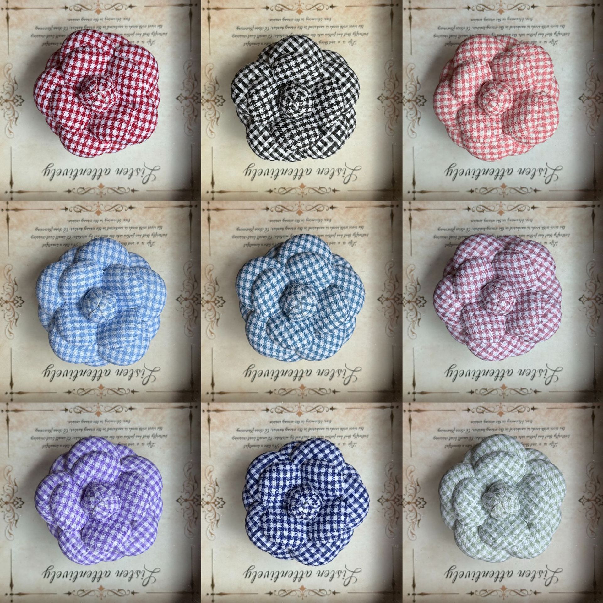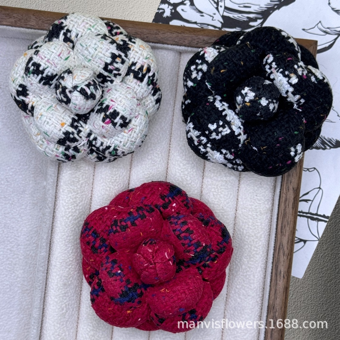 全6.6cmマルチカラーハイエンドチェック柄椿小花スタイリングフラワーブートニアジュエリーヘッドクリップフラワープラスブローチ