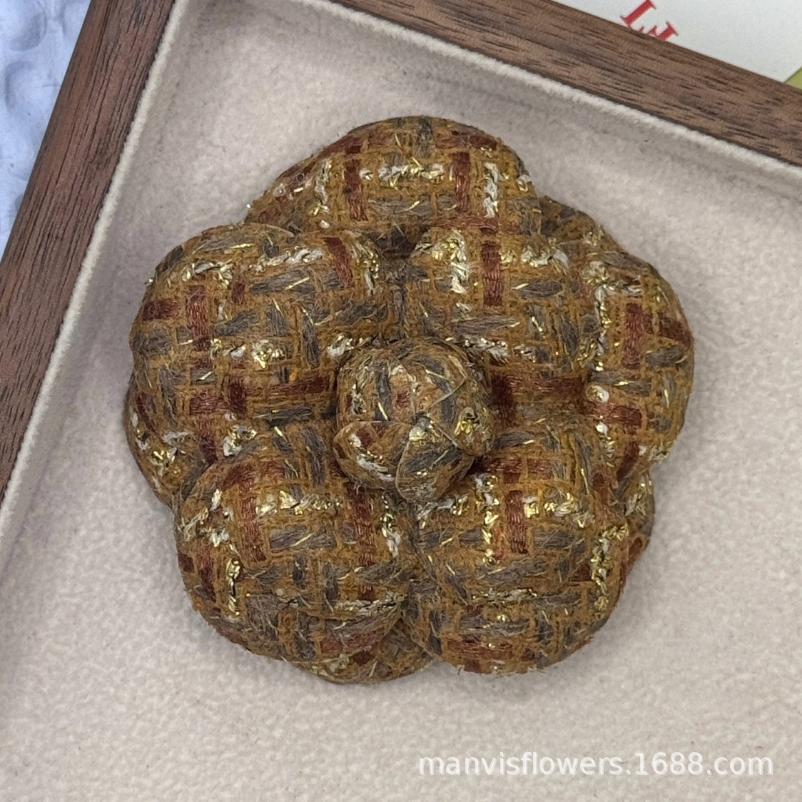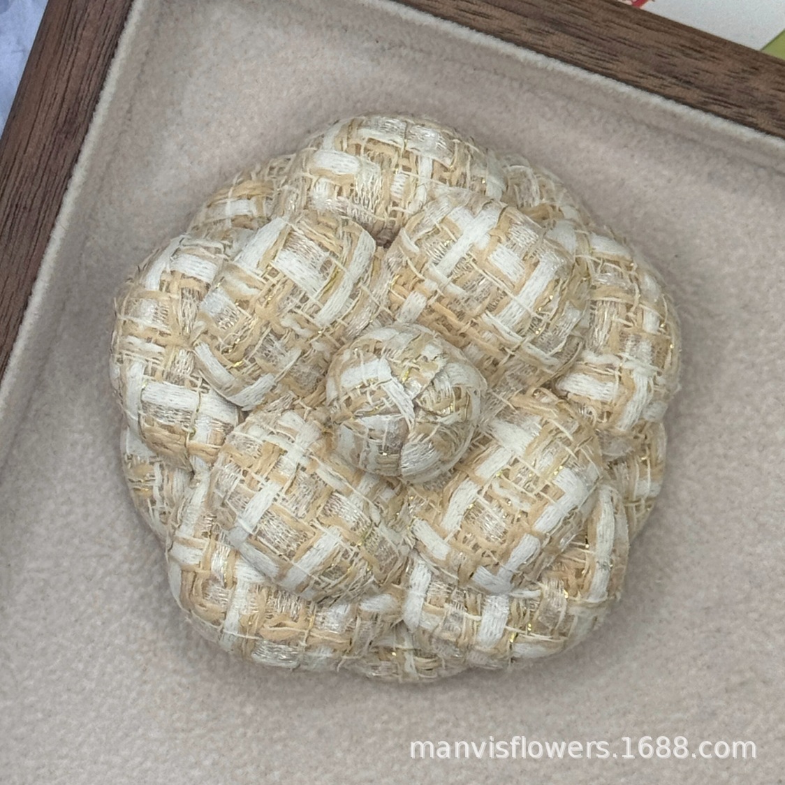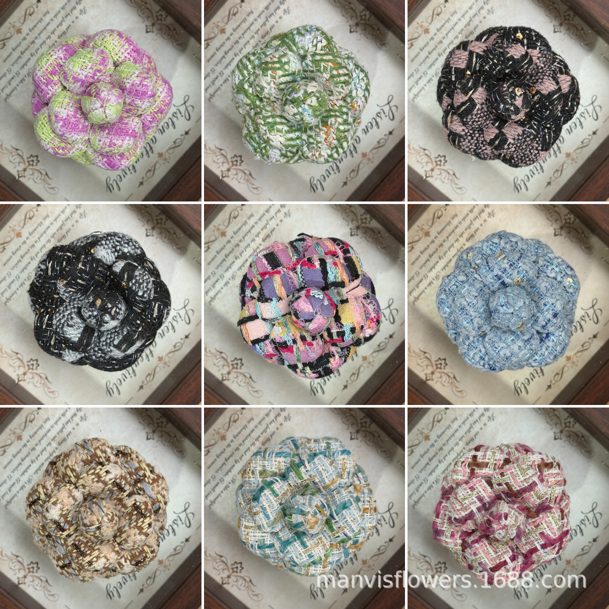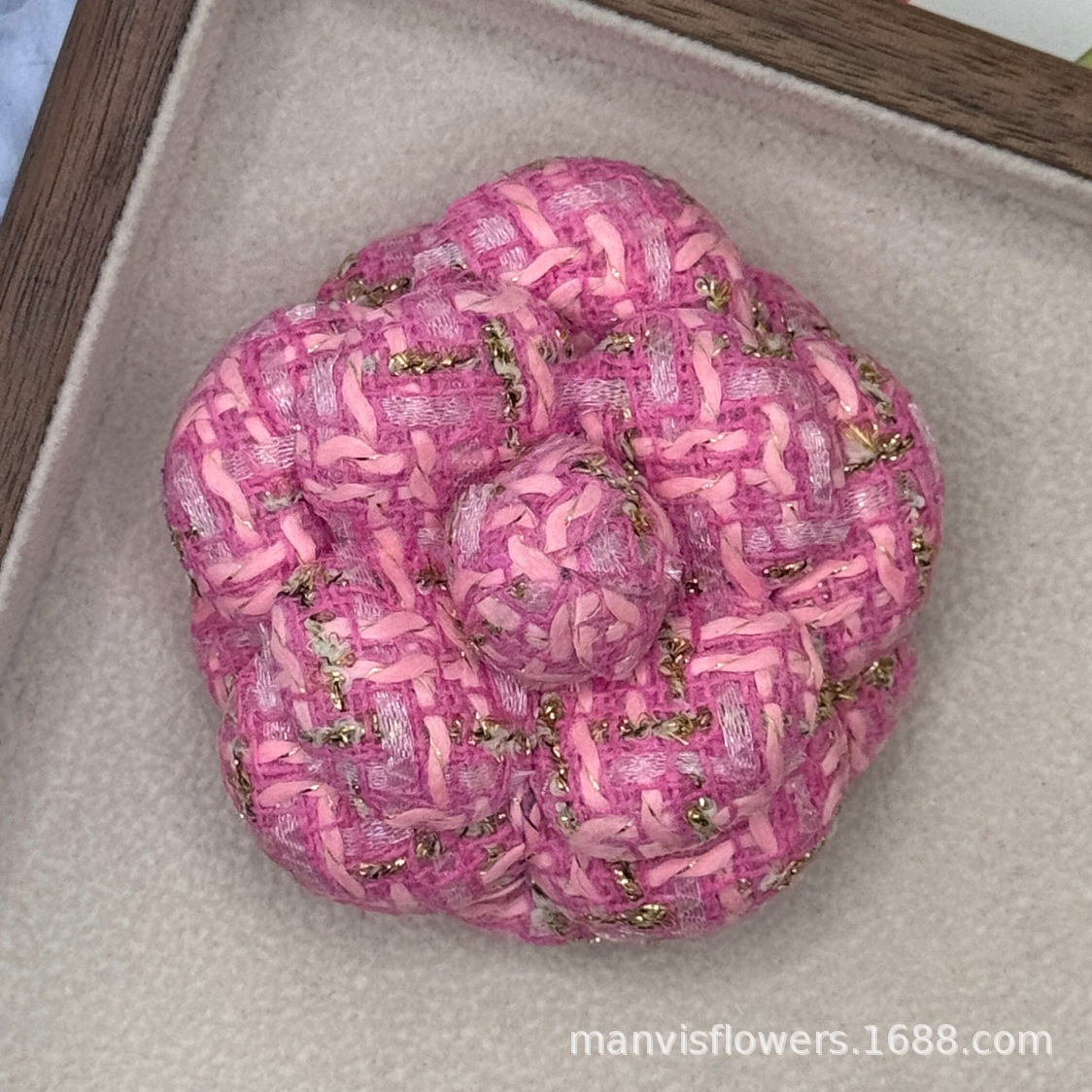 8cm高端粗花呢布料花朵山茶花胸针小香风胸花饰品包花胸花加别针