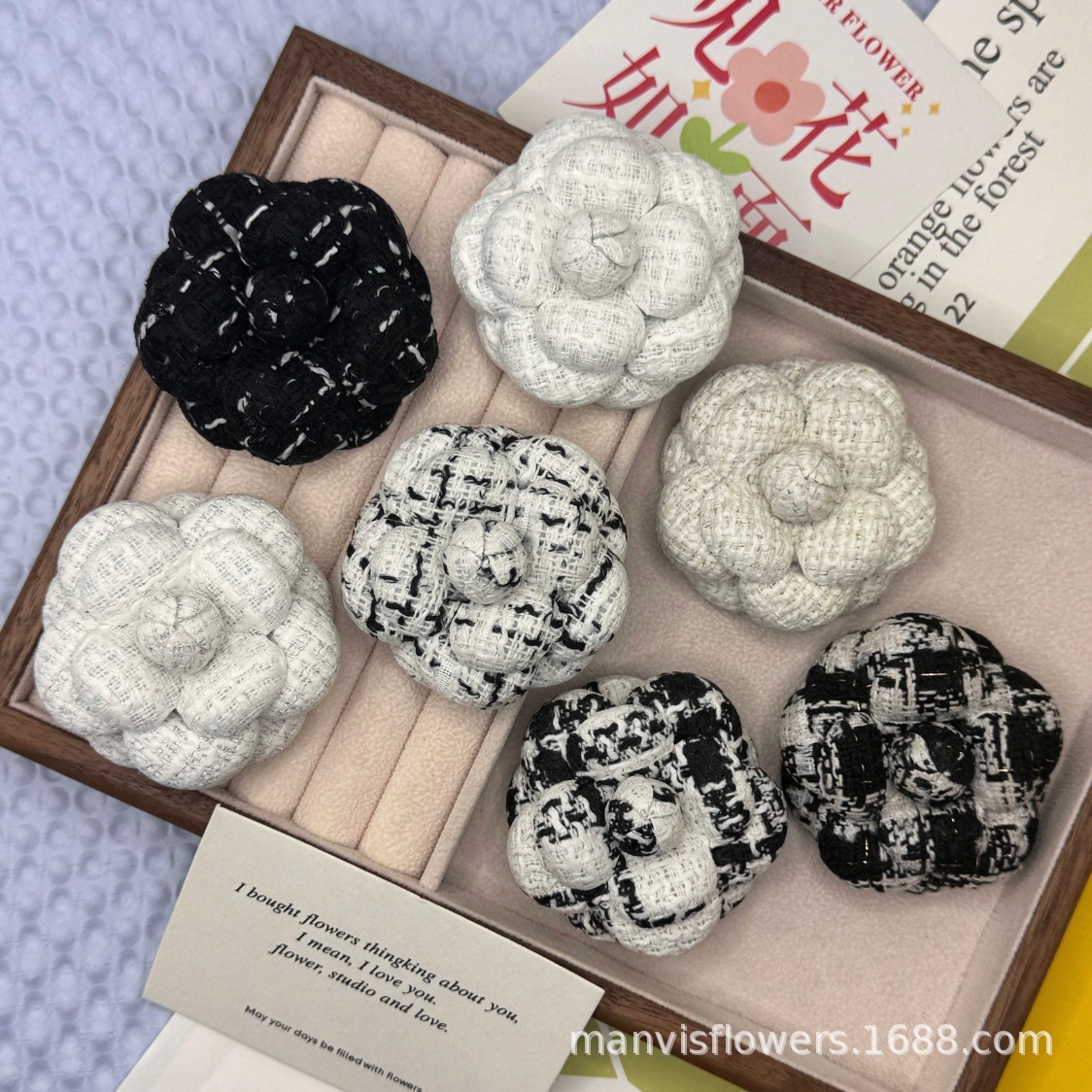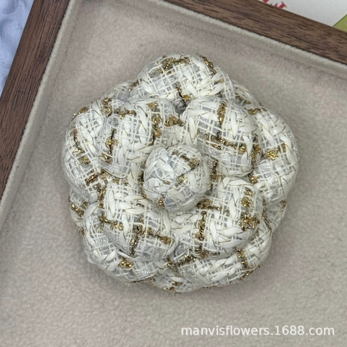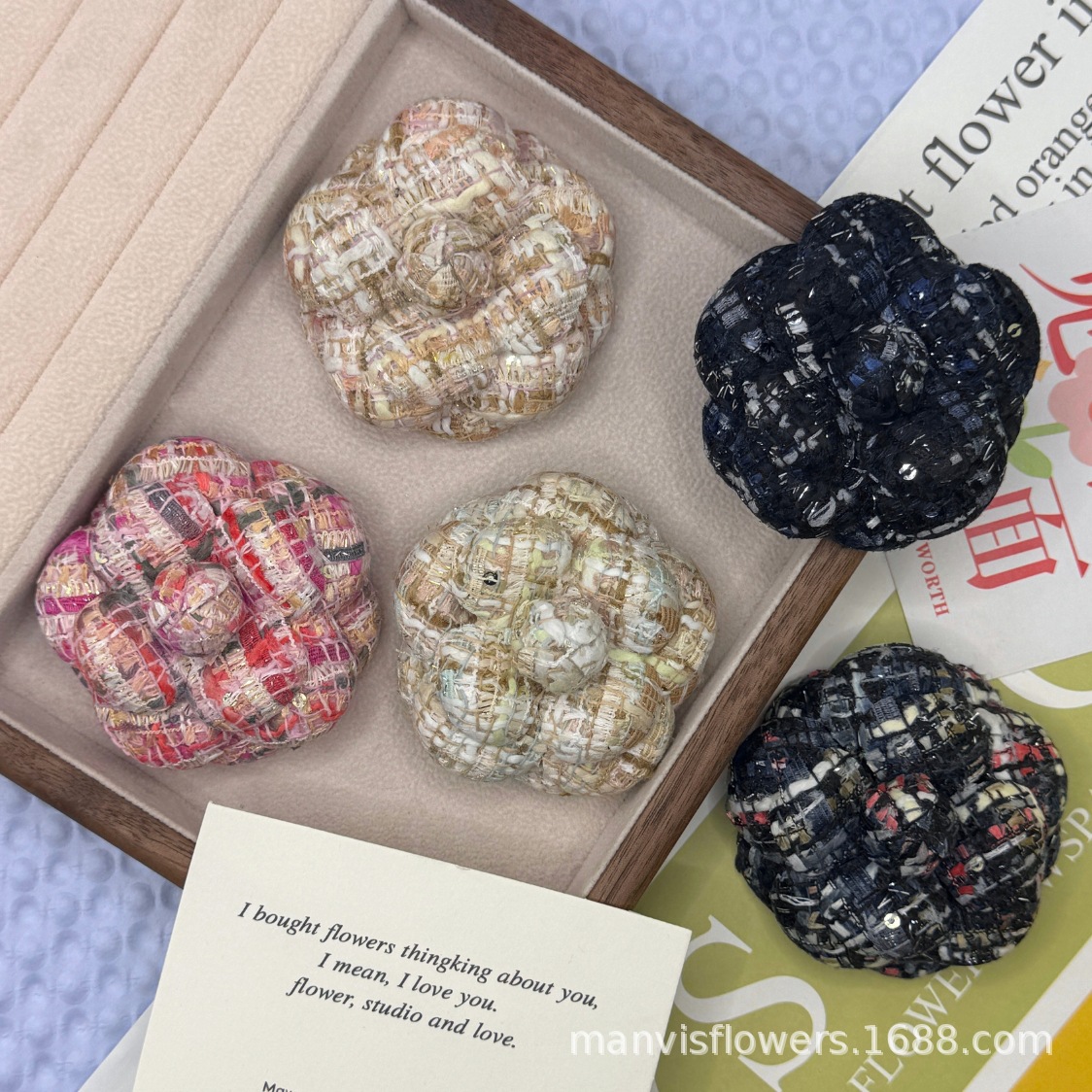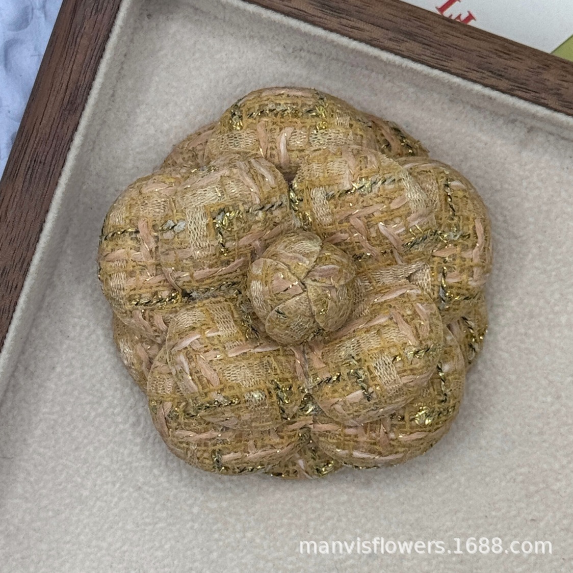 8cm高端粗花呢布料花朵山茶花胸针小香风胸花饰品包花胸花加别针