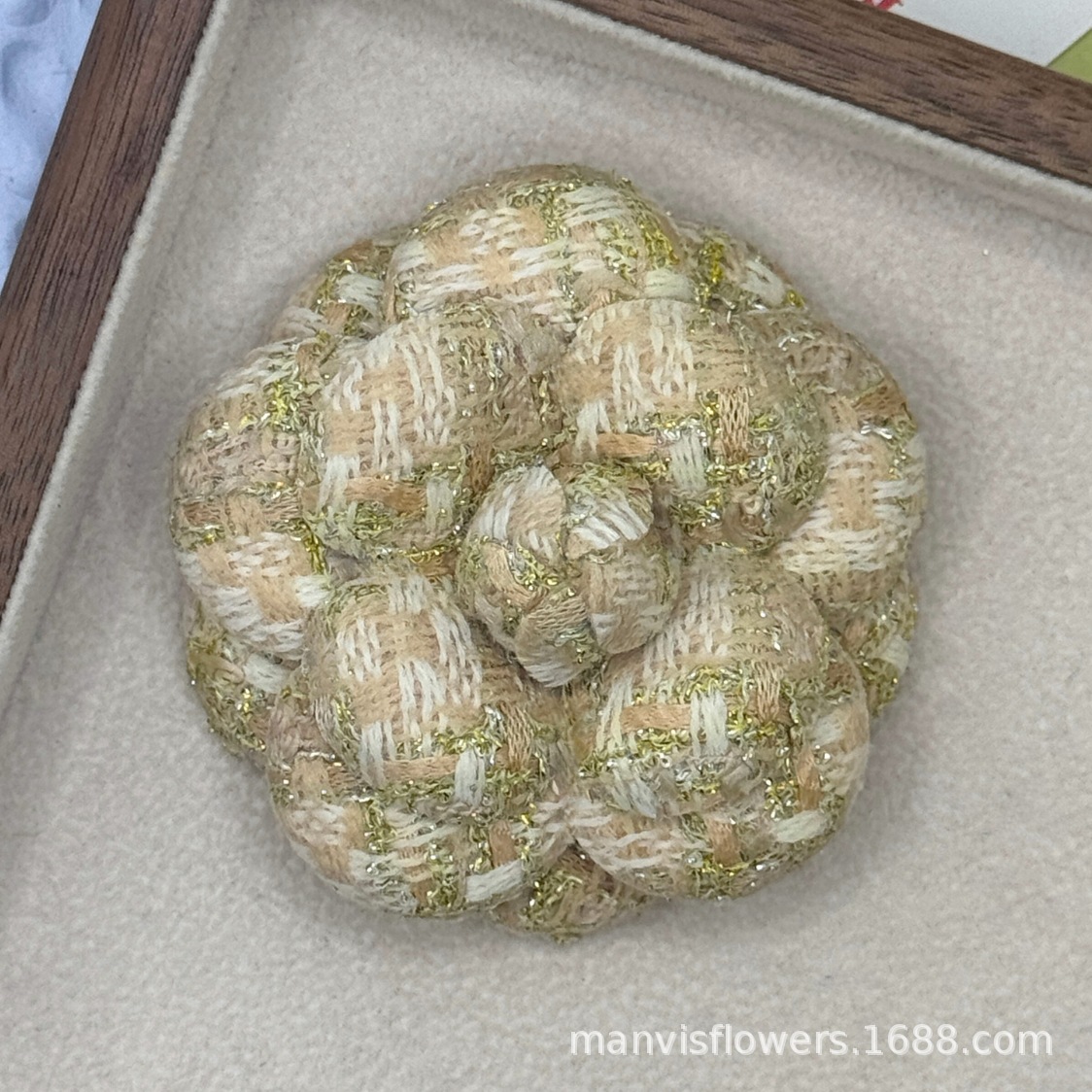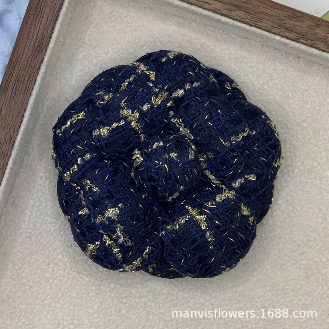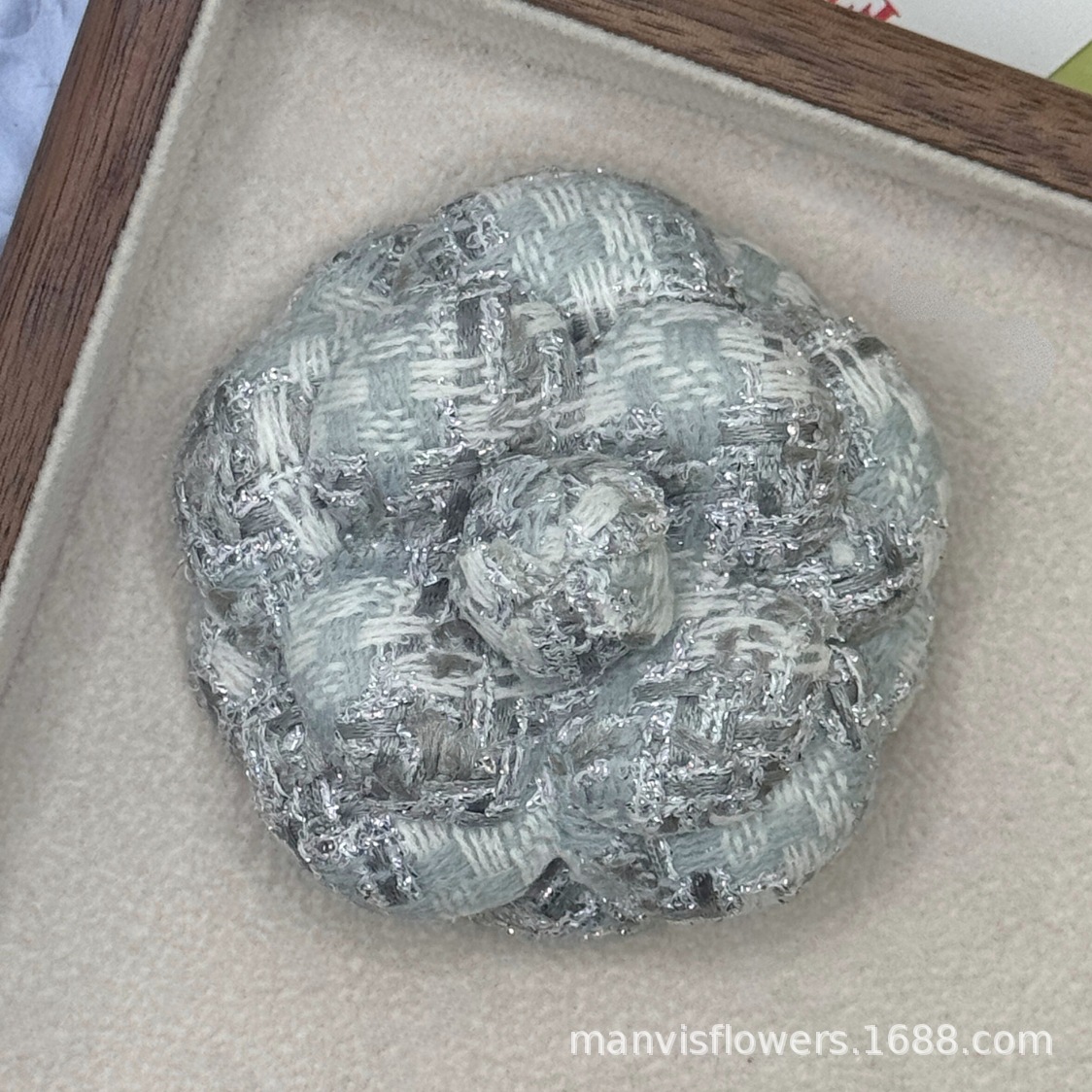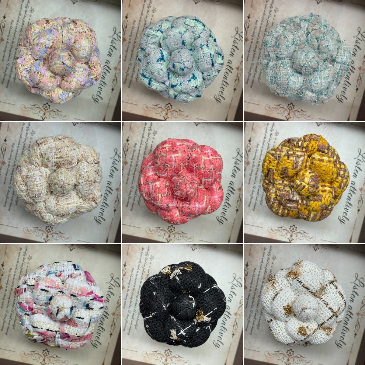 8cm高端粗花呢布料花朵山茶花胸针小香风胸花饰品包花胸花加别针