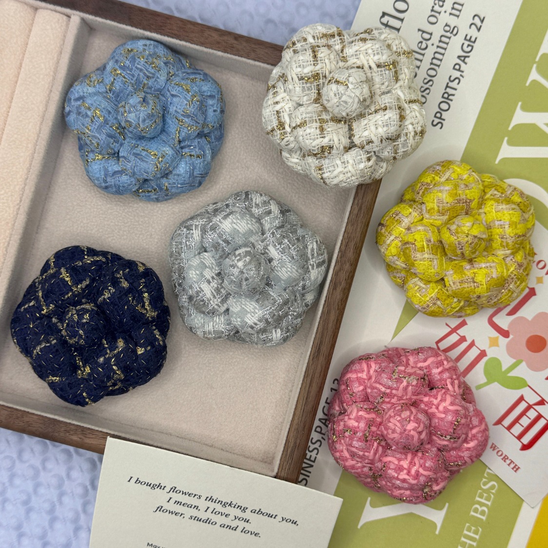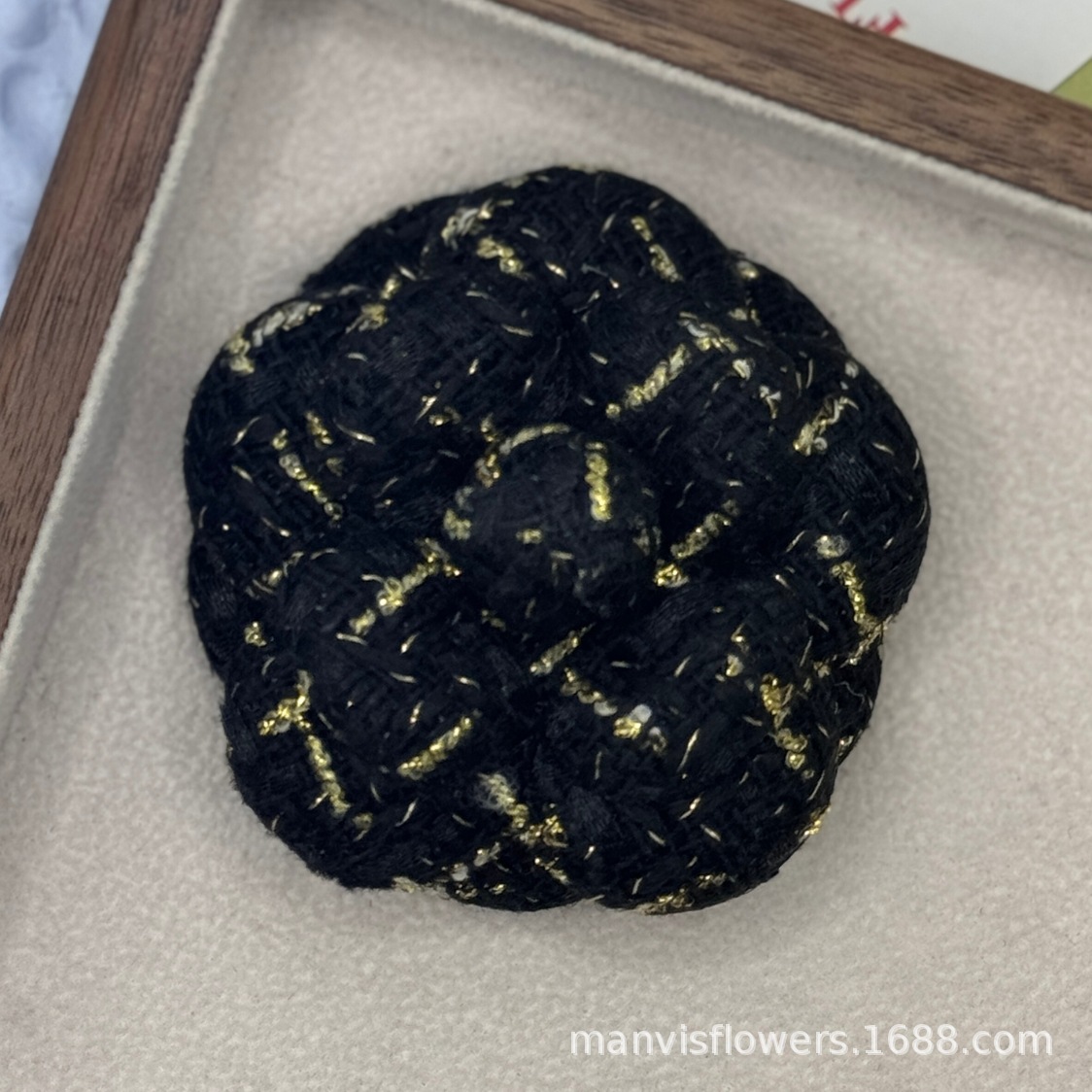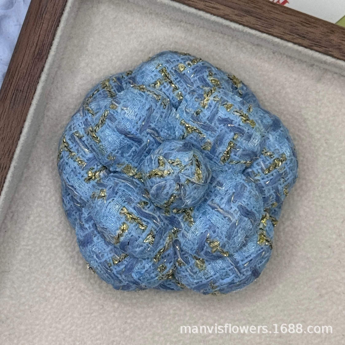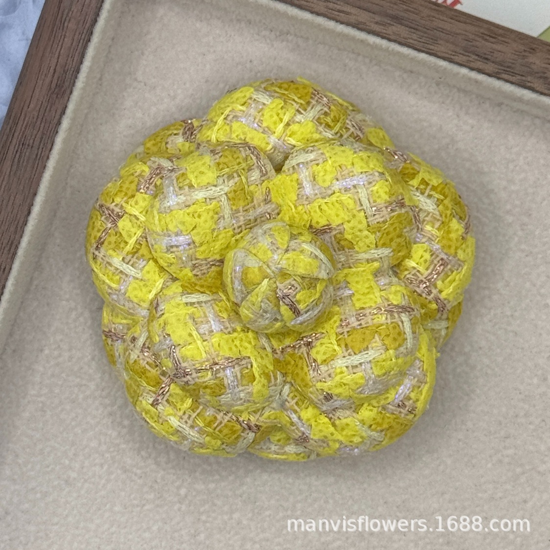 8cm高端粗花呢布料花朵山茶花胸针小香风胸花饰品包花胸花加别针