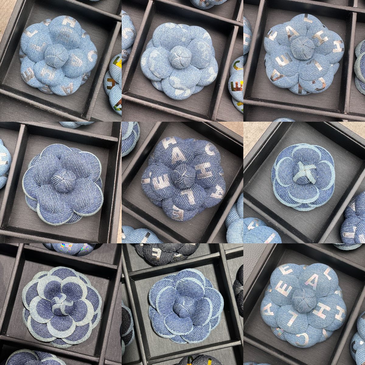デニム椿ブローチ女性の小さな香りの生地ツイードコサージュブローチレトロ春夏アクセサリー卸売デザイン