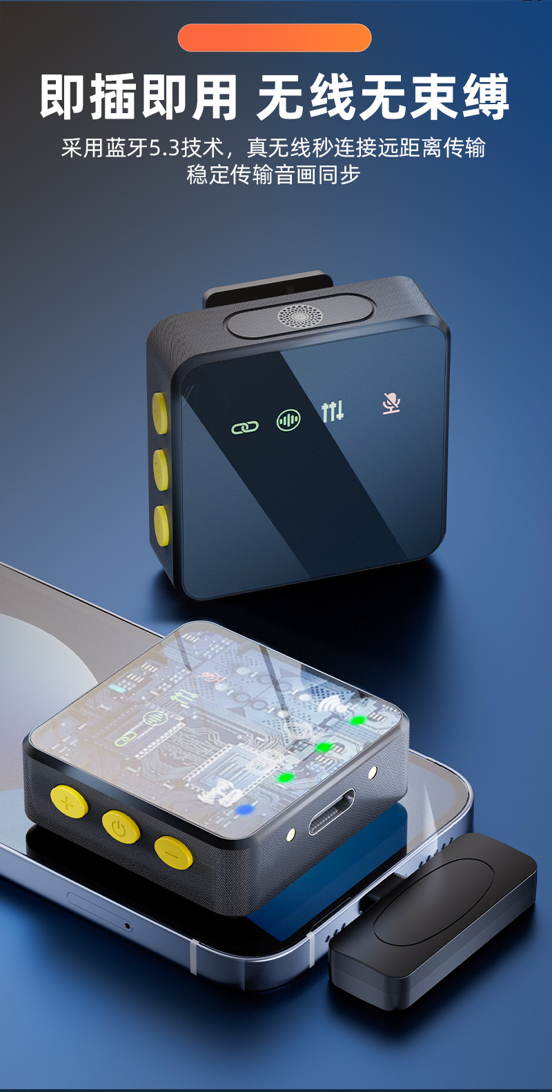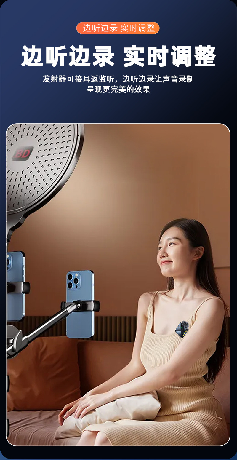 H12専用設計のピンマイク、スマホライブ配信用、屋外ノイズキャンセリング、Bluetooth対応、コンパクトボックス型マイク、コンデンサー式、高音質。