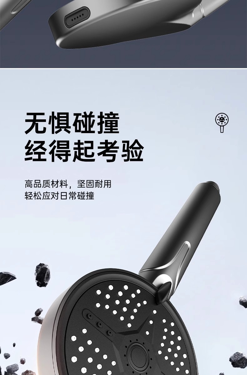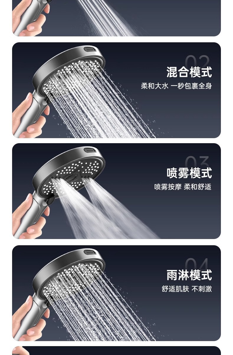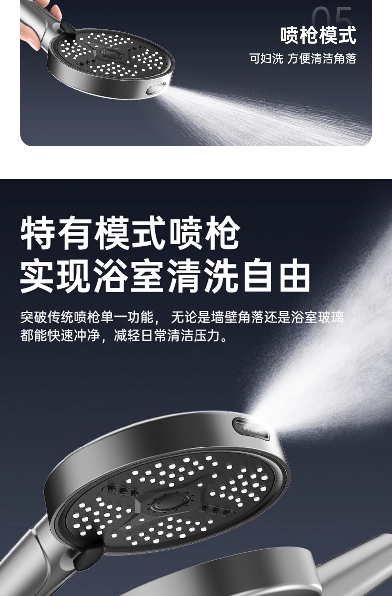新款跨境大面板增压花洒五档调节喷枪淋浴喷头家用洗澡手持莲蓬头