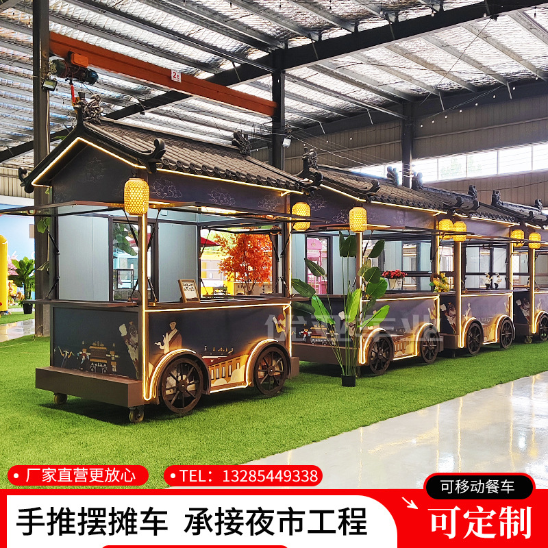 古风夜市可移动摆摊车国潮风格售卖亭多功能小吃车街边早餐车
