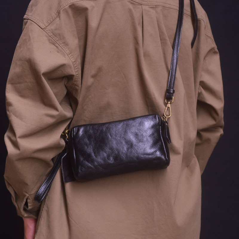 手作りのレトロな頭の層になめした牛革のショルダーバッグ