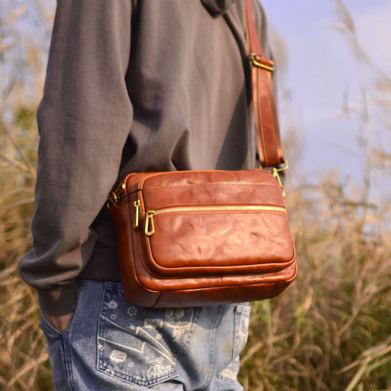 しわの本革の男性の肩掛けの頭の層の牛革は個性の斜めのショルダーバッグの日系の小さいショルダーバッグのカジュアルな斜めのショルダーバッグに似合います。