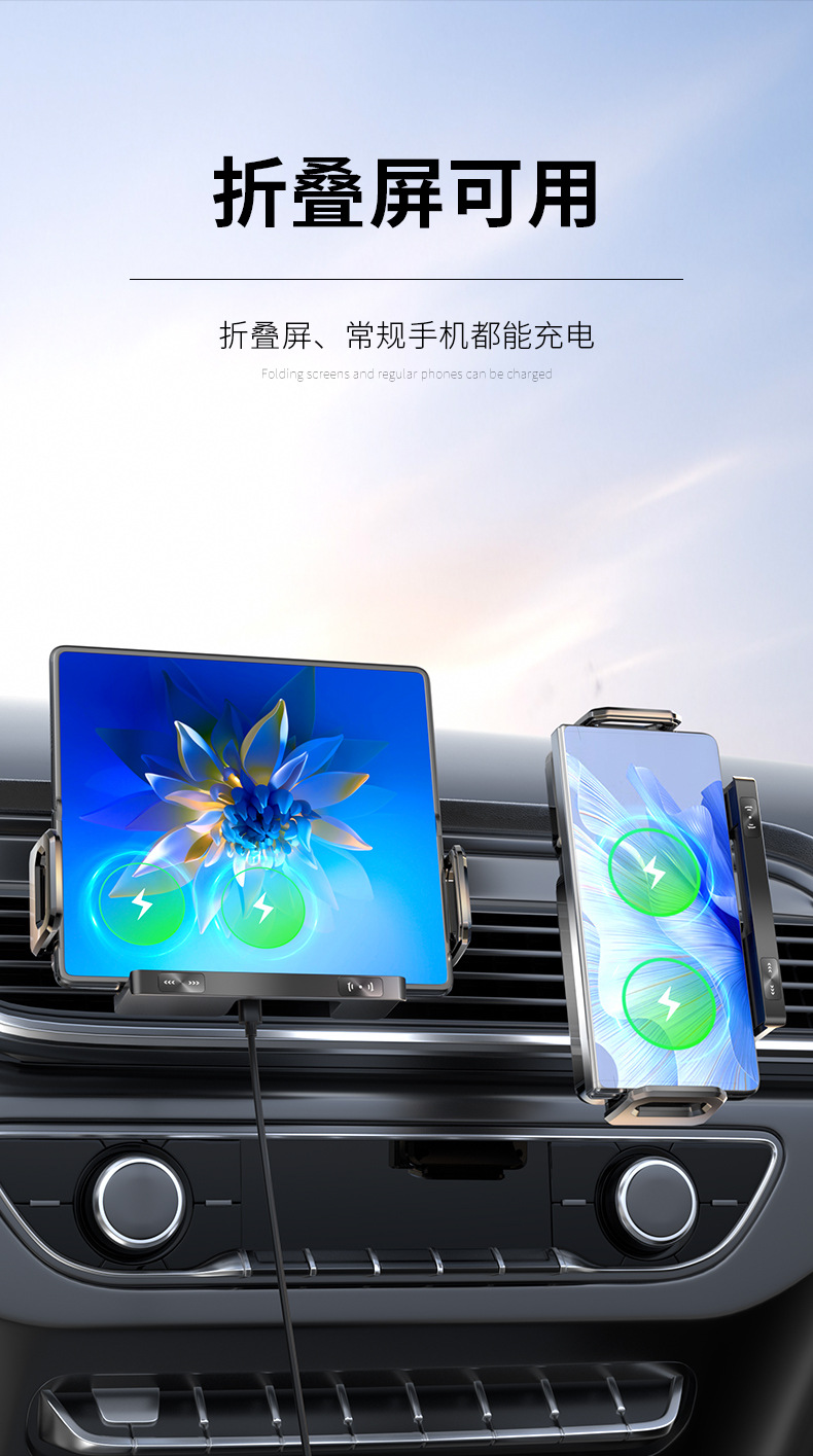 新型折りたたみスクリーン車載携帯スタンド無線充電自動車内装通用無線充電携帯電話自動車用品
