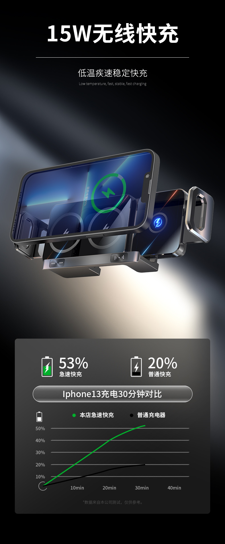 魔クリップT50磁気車載携帯電話無線充電スタンド科学技術雰囲気ランプ吹出口ナビゲーションサポート用品