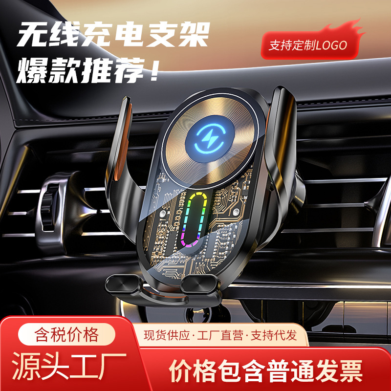 源工場車載携帯電話スタンド赤外線自動開閉15w無線充電カラーロゴ自動車用品