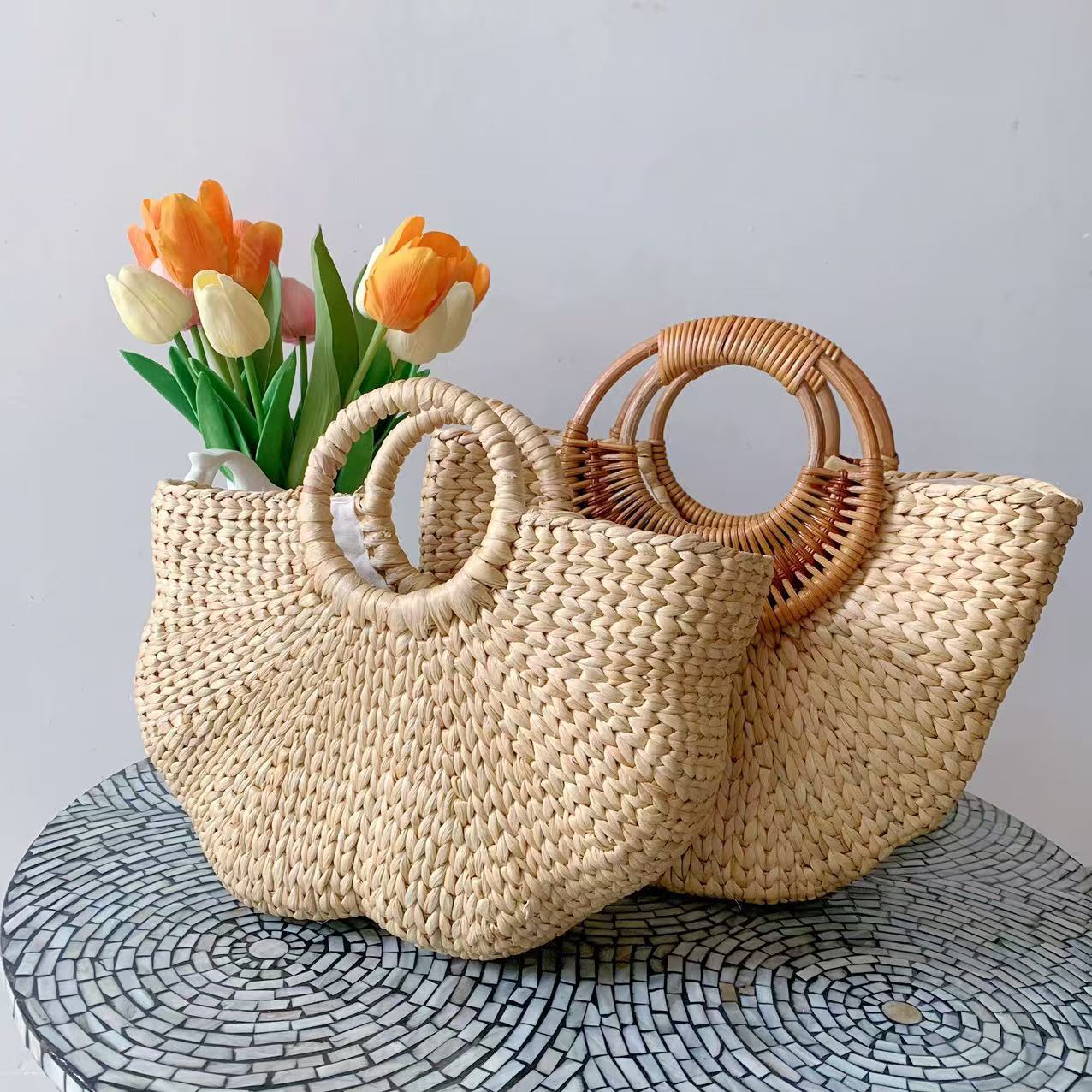 手編み海草編みバッグ小衆手提げバッグ野炊小清新ins草かご草編み手提げかご