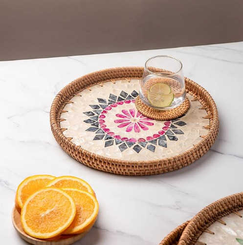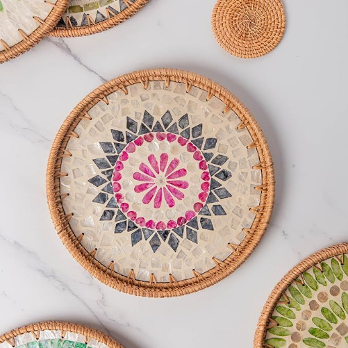 ベトナム籐编みシェルトレイ彩贝収纳家庭用リビングルームスナック皿スナック収纳トレイ