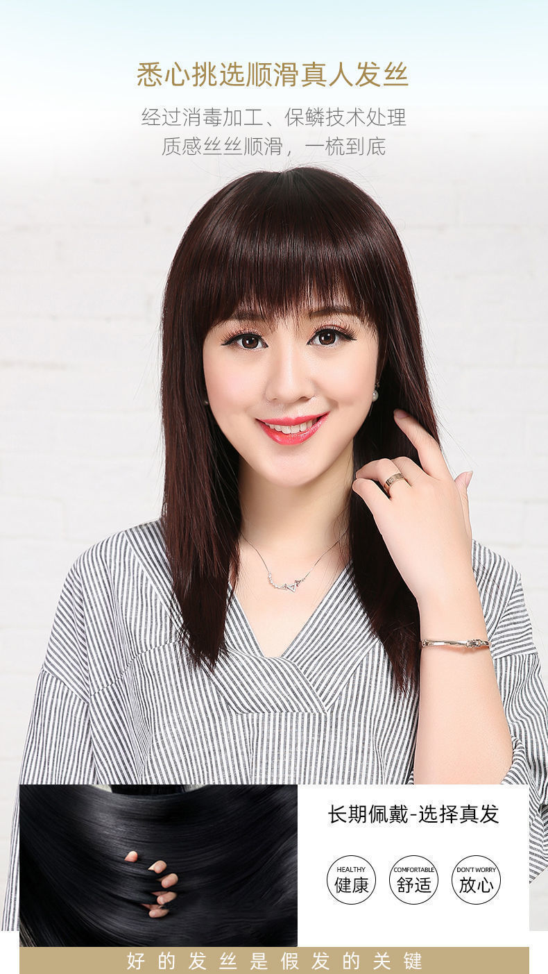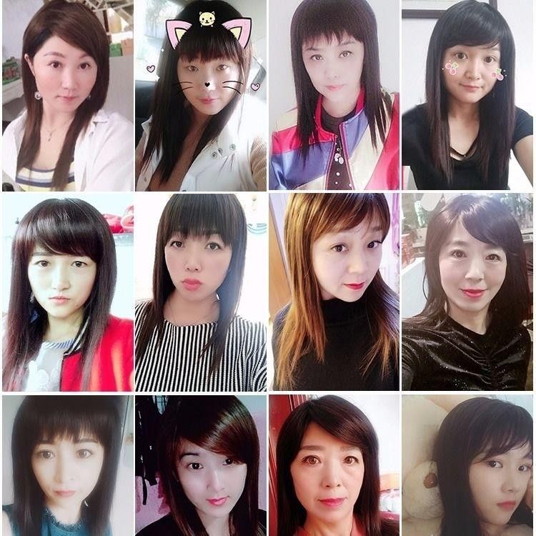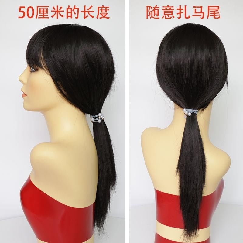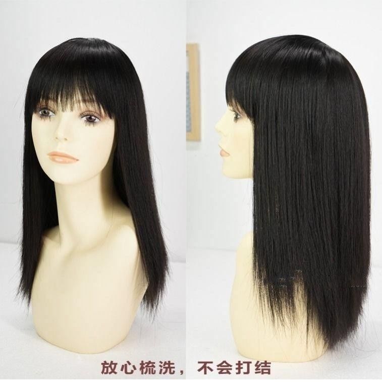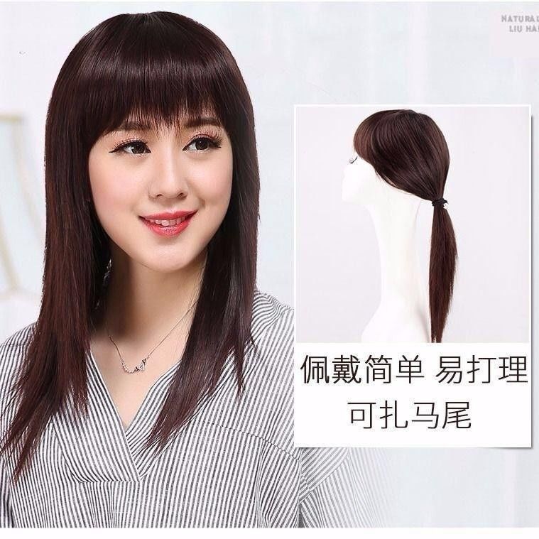 かつらの女性の中で長い髪の日本の丸い顔の空気の前髪の長いまっすぐな髪のかわいいjkの少女の自然なリアルな全体のカバー式