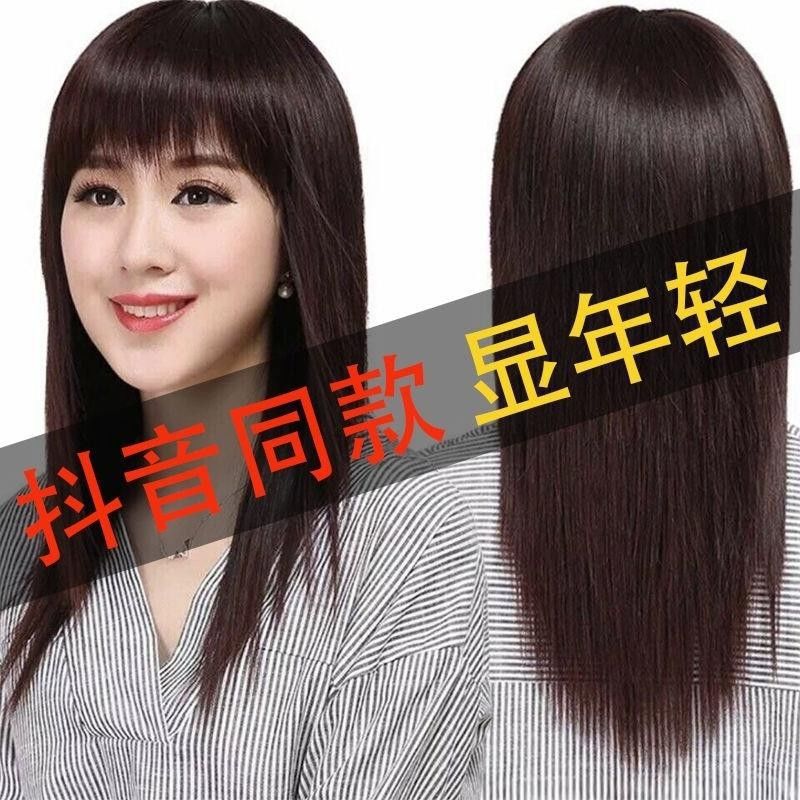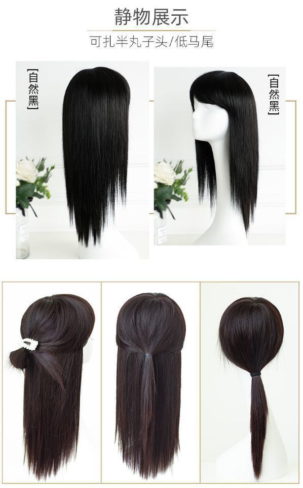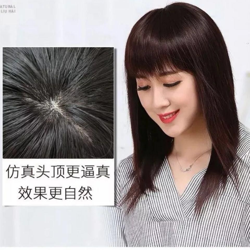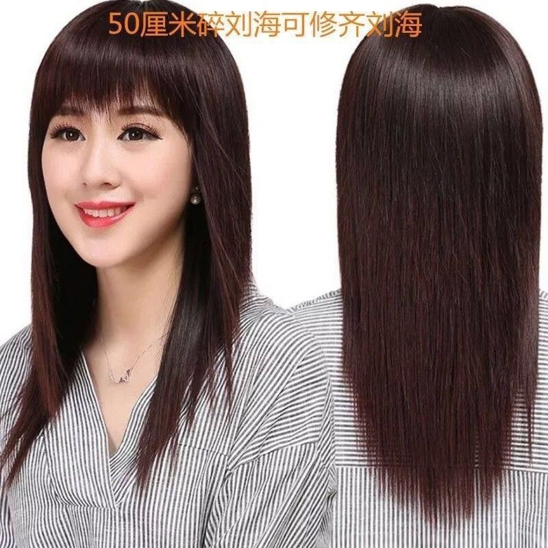 头顶遮白发假补发块假发片女中分刘海隐形中长款直发片长直发假发
