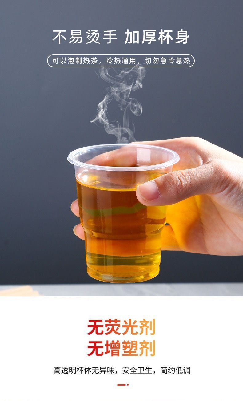 新しいプラスチックカップは使い捨てコップの透明コップを厚くして高温に耐えます。
