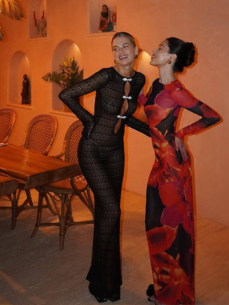 2024新商品の透かし彫りの長いスカートのビーチのブラウスのボヘミアンのワンピースの長いタイプの魚の尾のタキシード