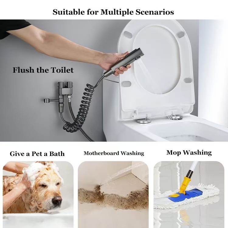 ガングレー便器パートナーセット増圧スプレーガン水鉄砲トイレ洗浄器一進二出角弁ダブル蛇口