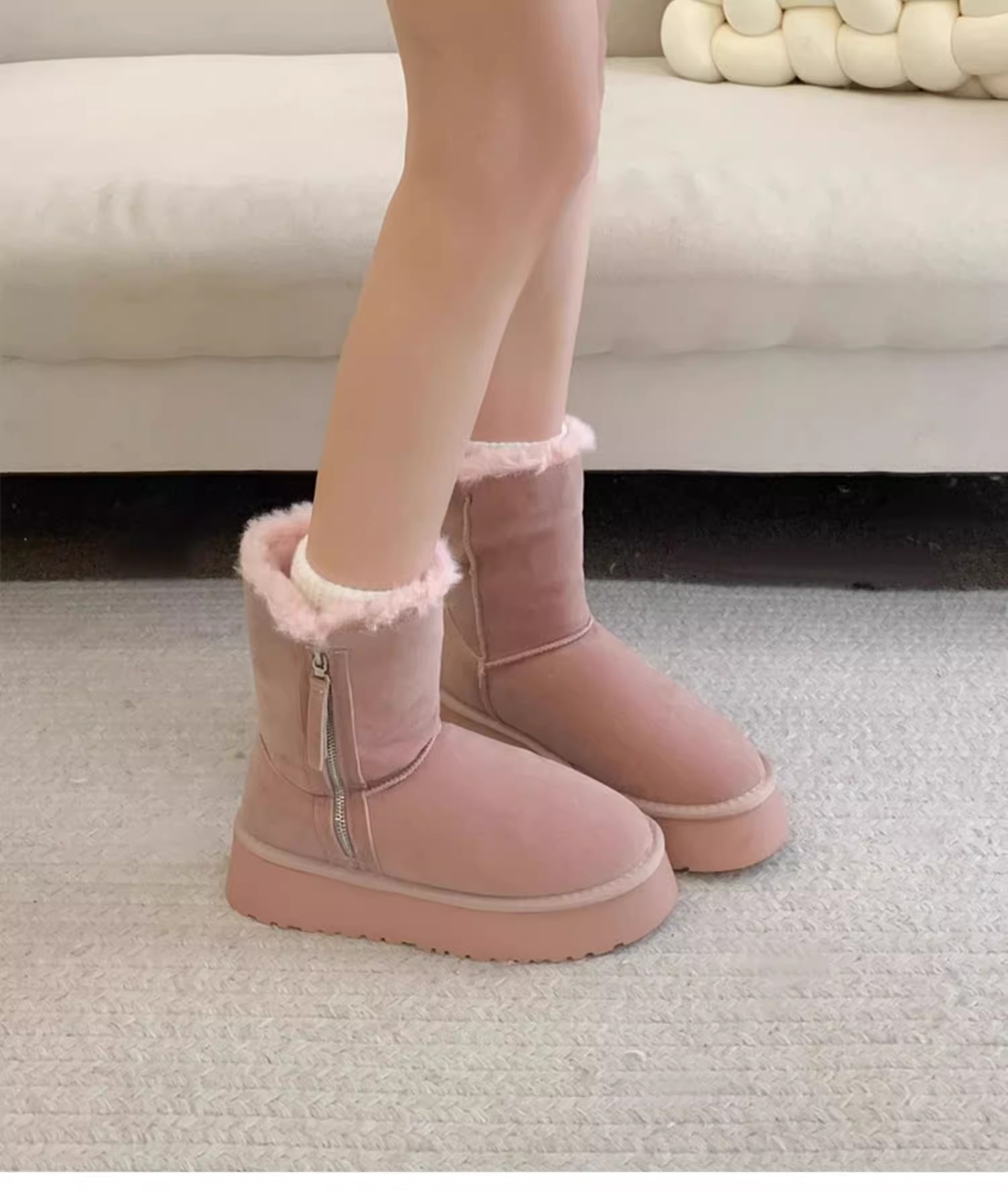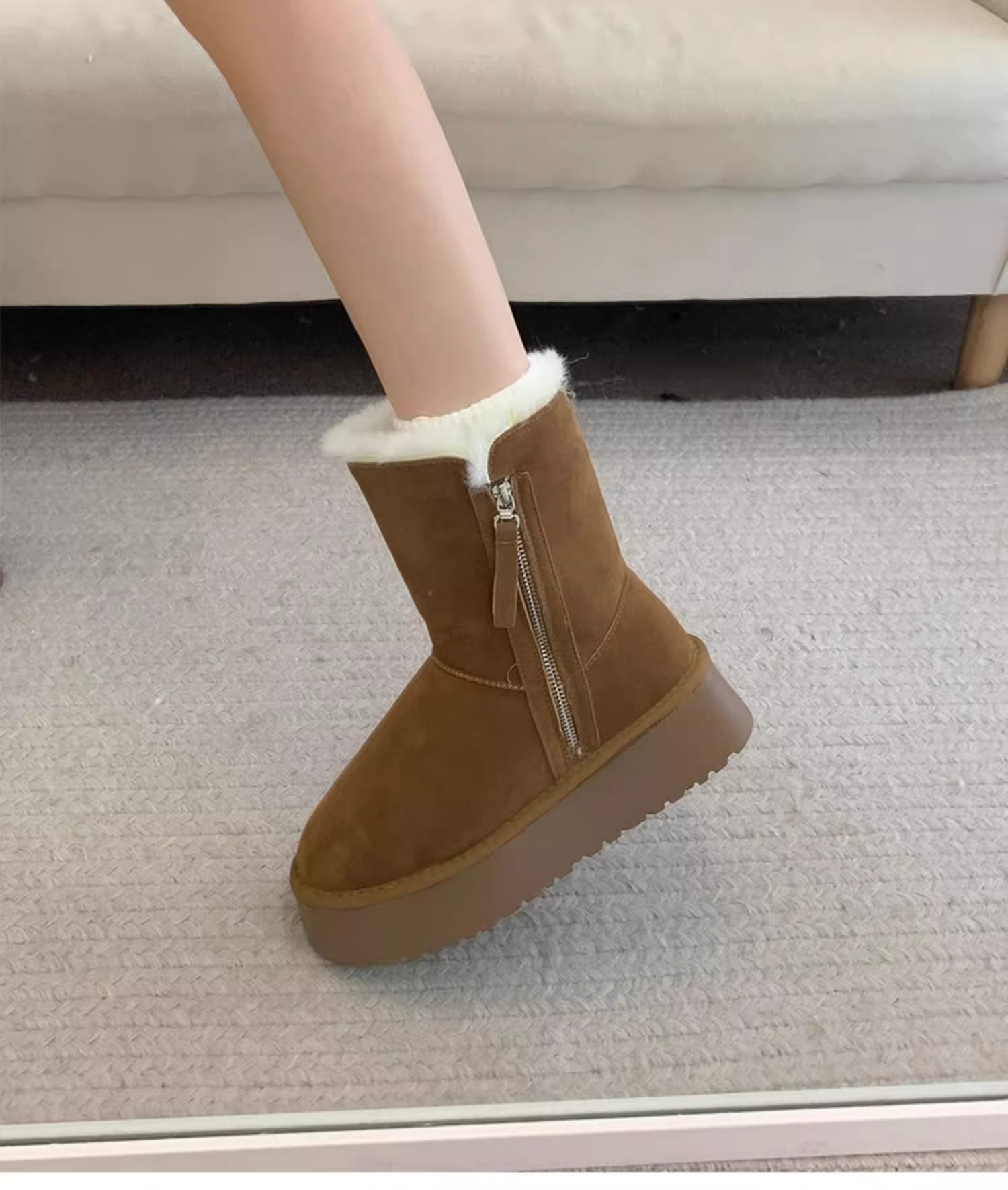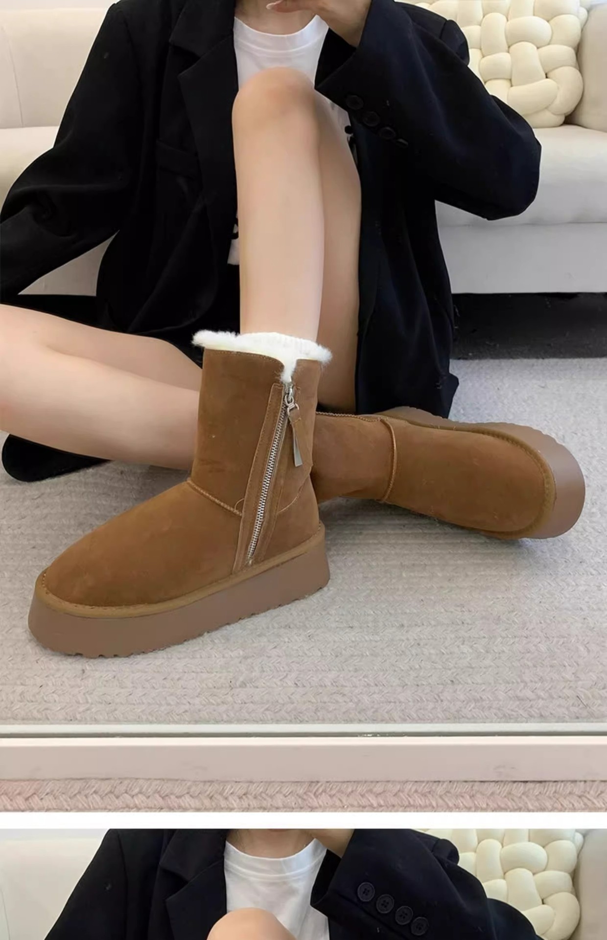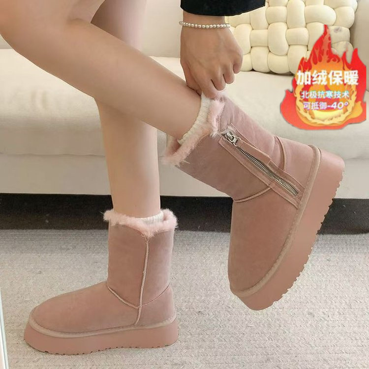 厚底スエード暖かいスノーブーツ防水多用途ミッドカーフブーツ2024冬サイドジッパーブーツ女性用綿靴冬モデル