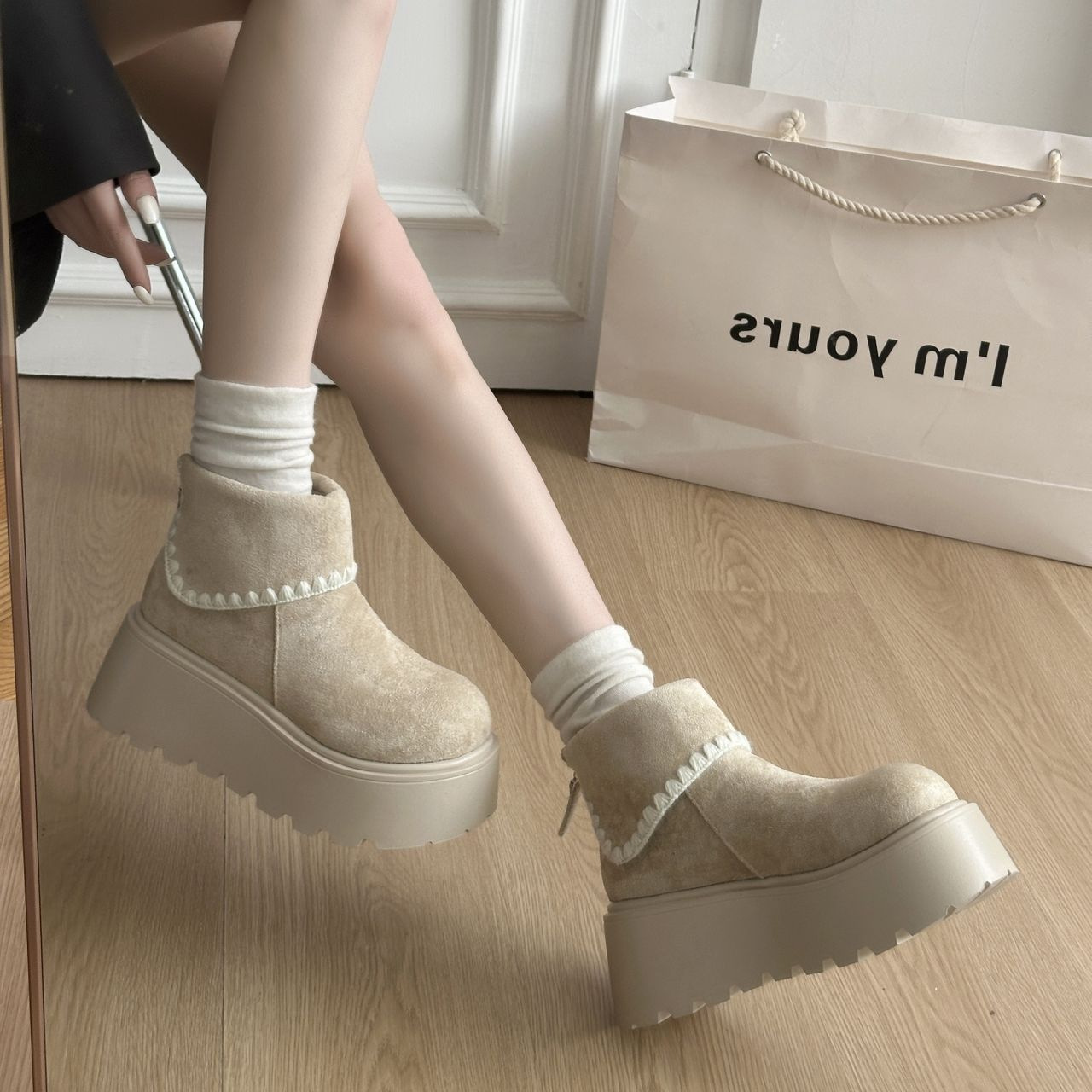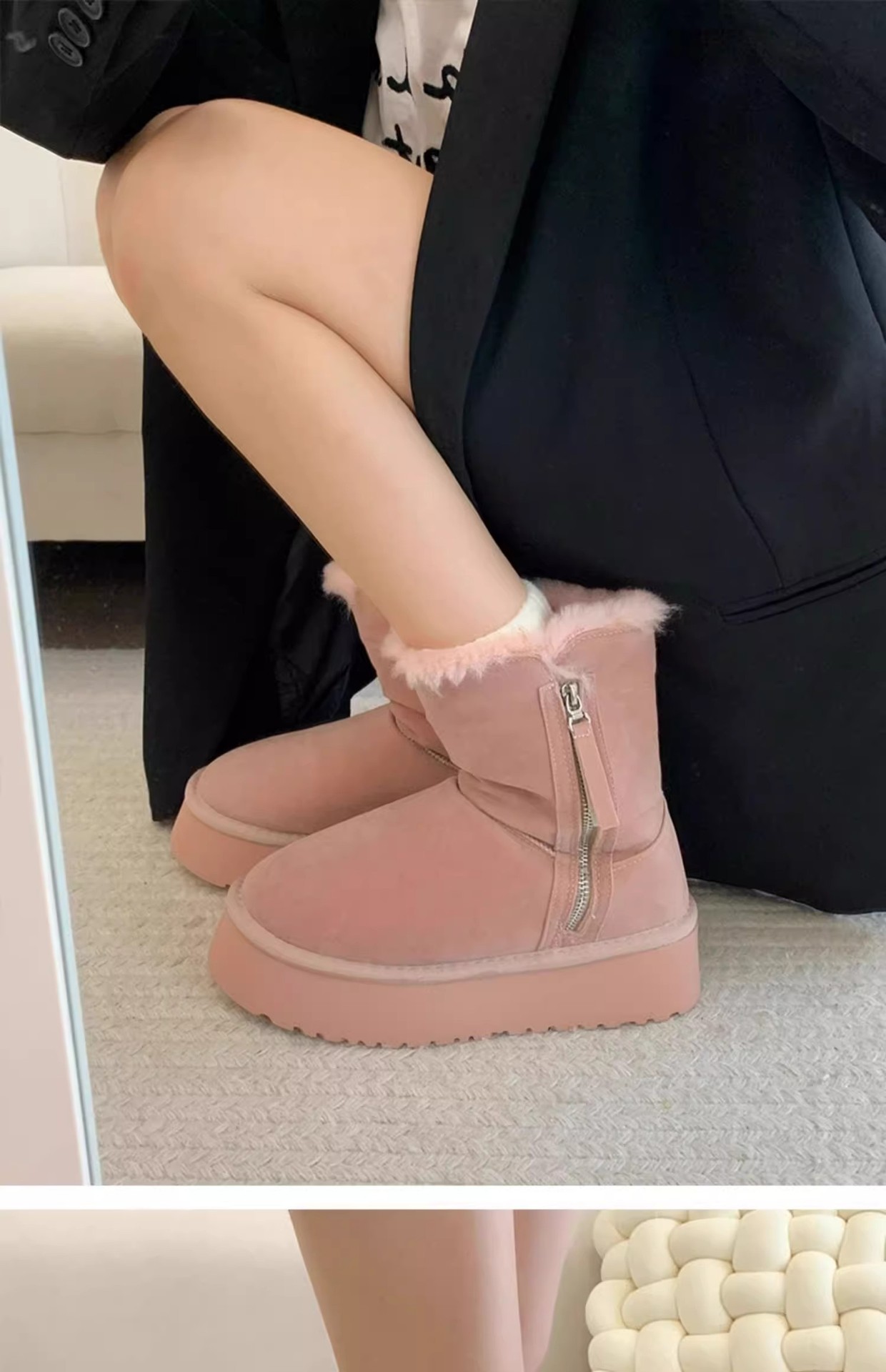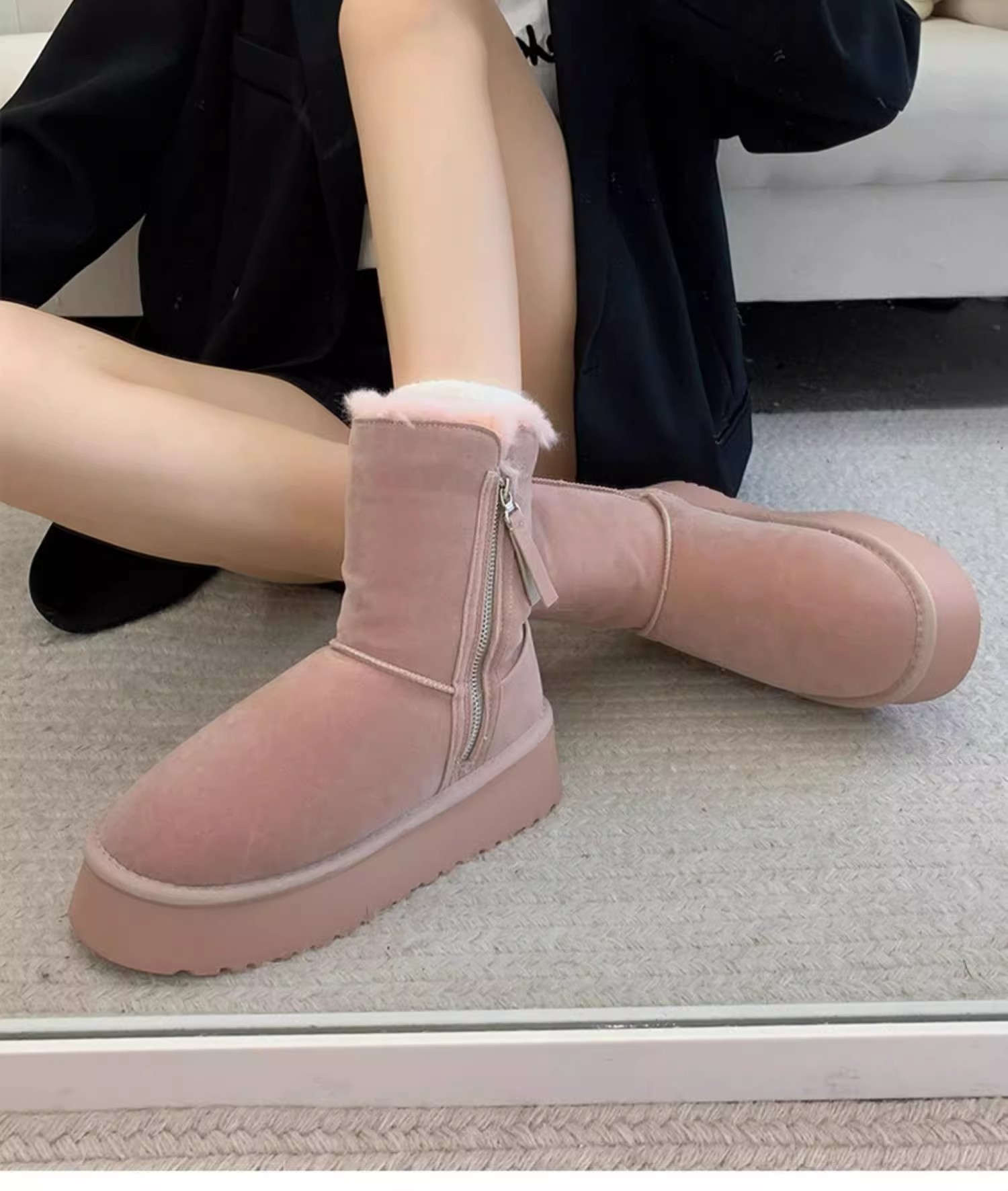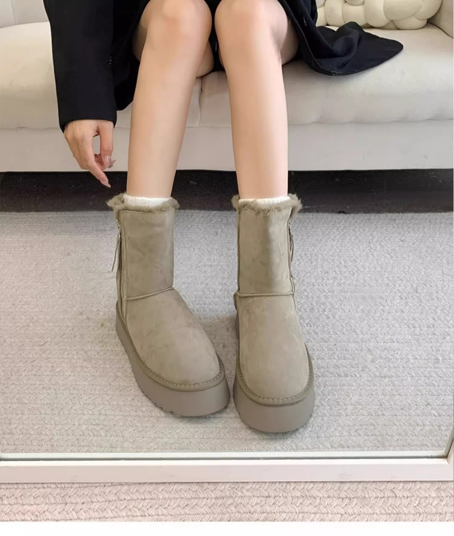 厚底スエード暖かいスノーブーツ防水多用途ミッドカーフブーツ2024冬サイドジッパーブーツ女性用綿靴冬モデル