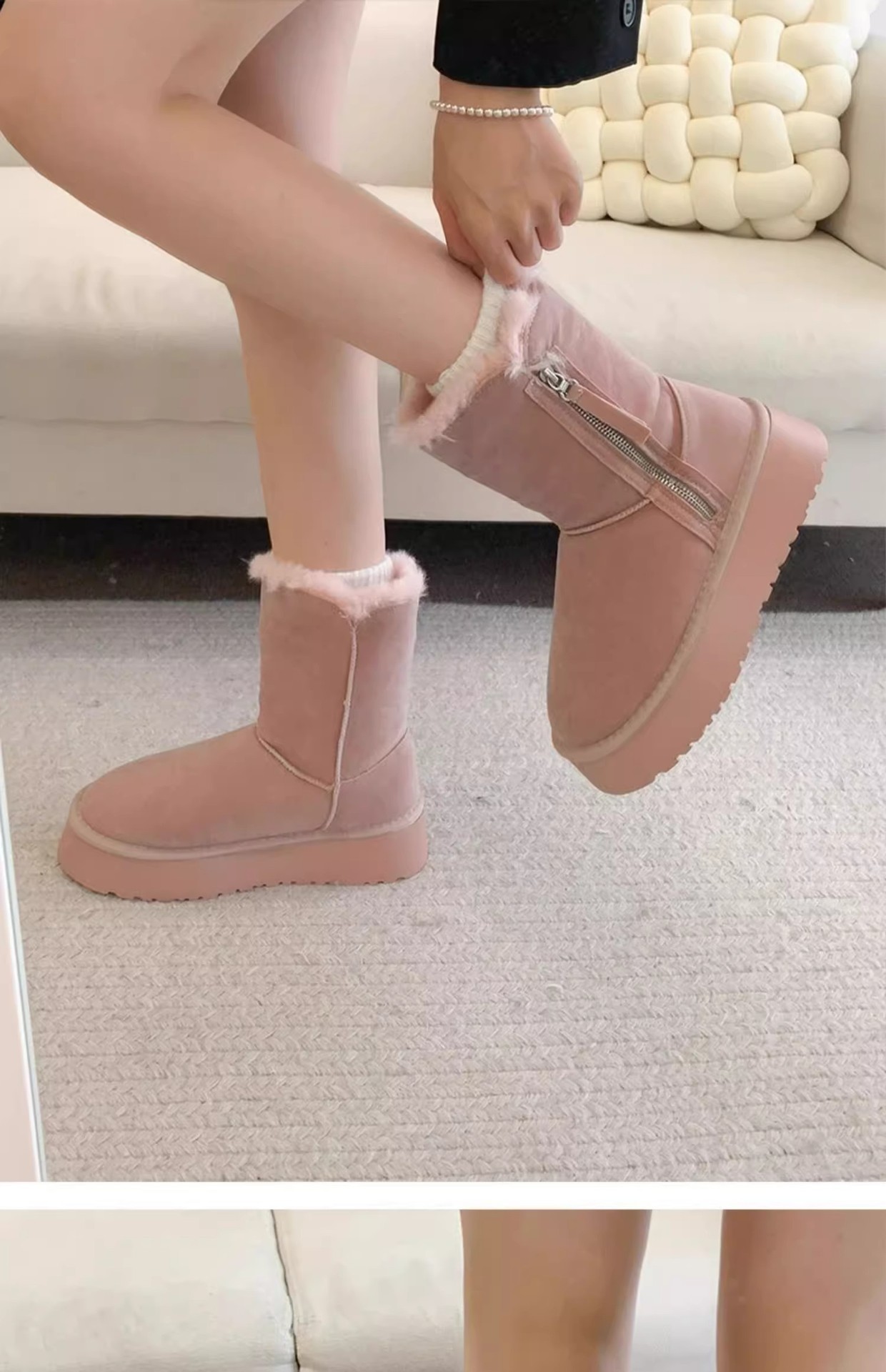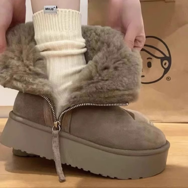 东北加厚靴子2025年加绒新款保暖皮毛一体短筒厚底雪地女侧拉链