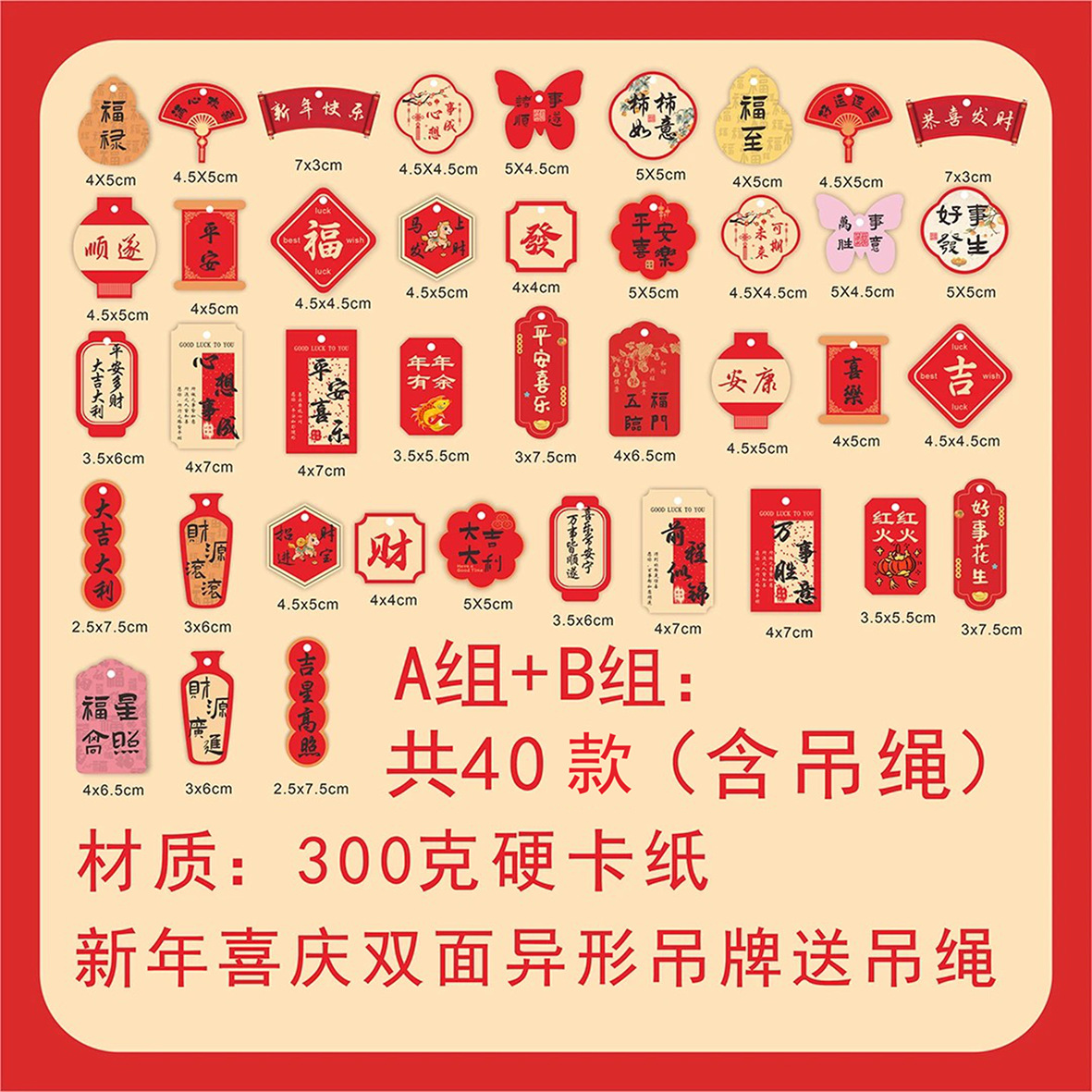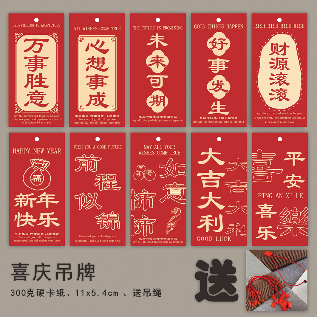 恭喜发财喜庆吊牌新年红色系平安喜乐挂牌春节礼盒伴手礼装饰卡片