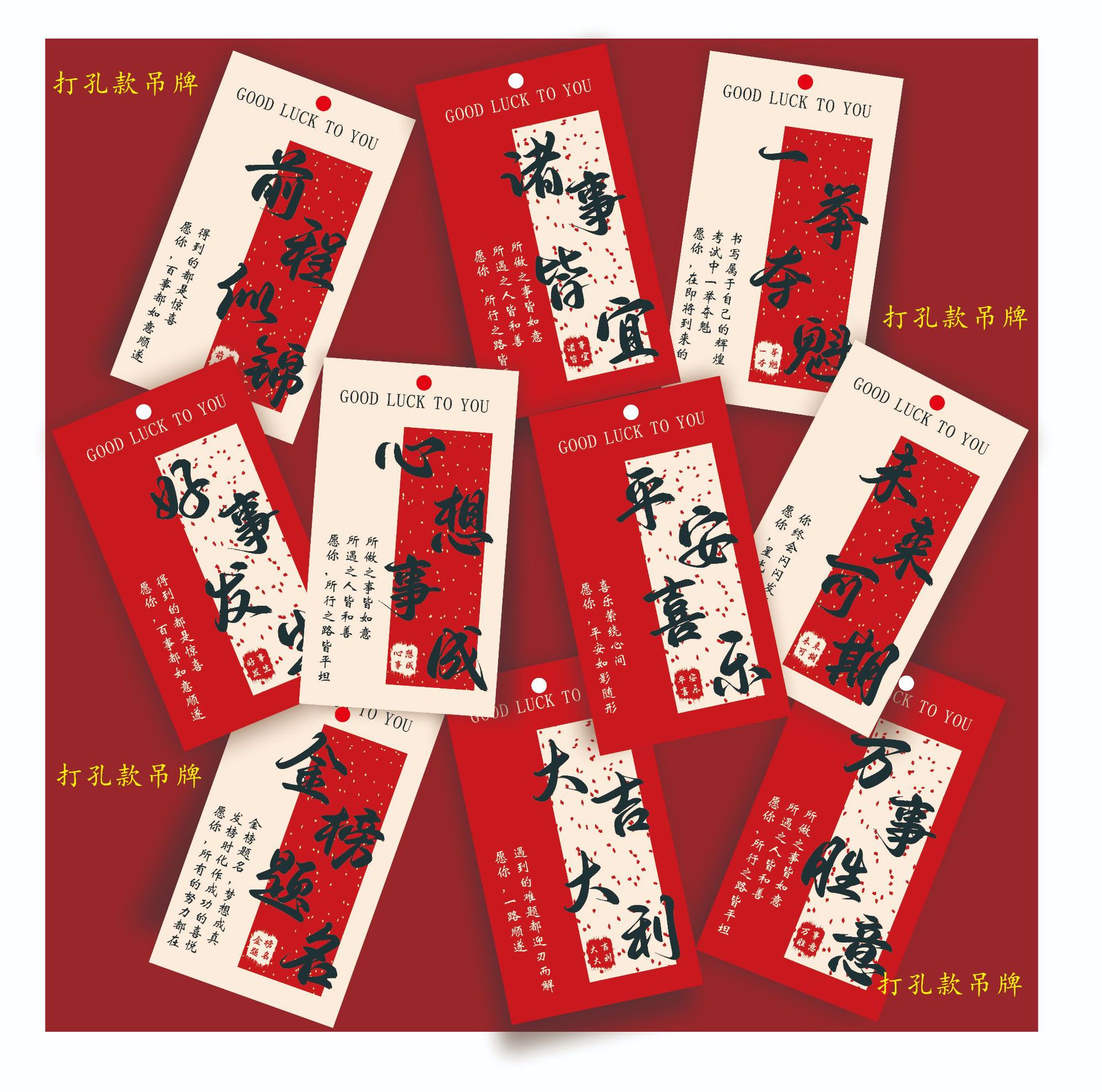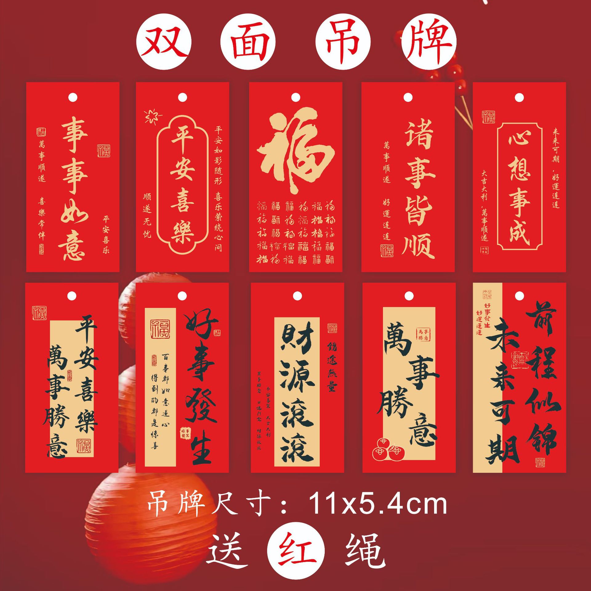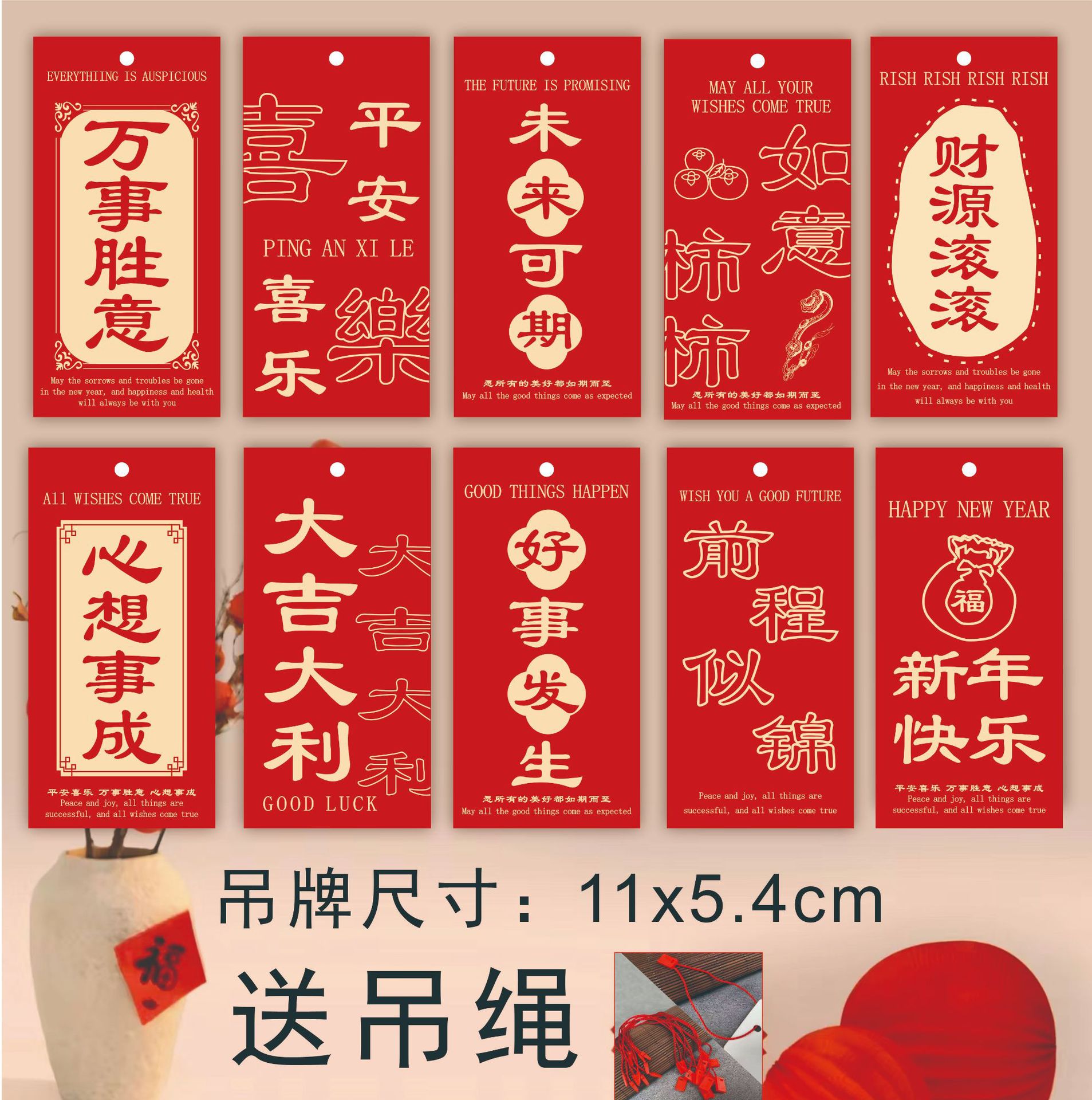 新年平安诸事顺遂吊牌许愿万事顺遂挂饰装饰中式祈福吊卡盆景挂件