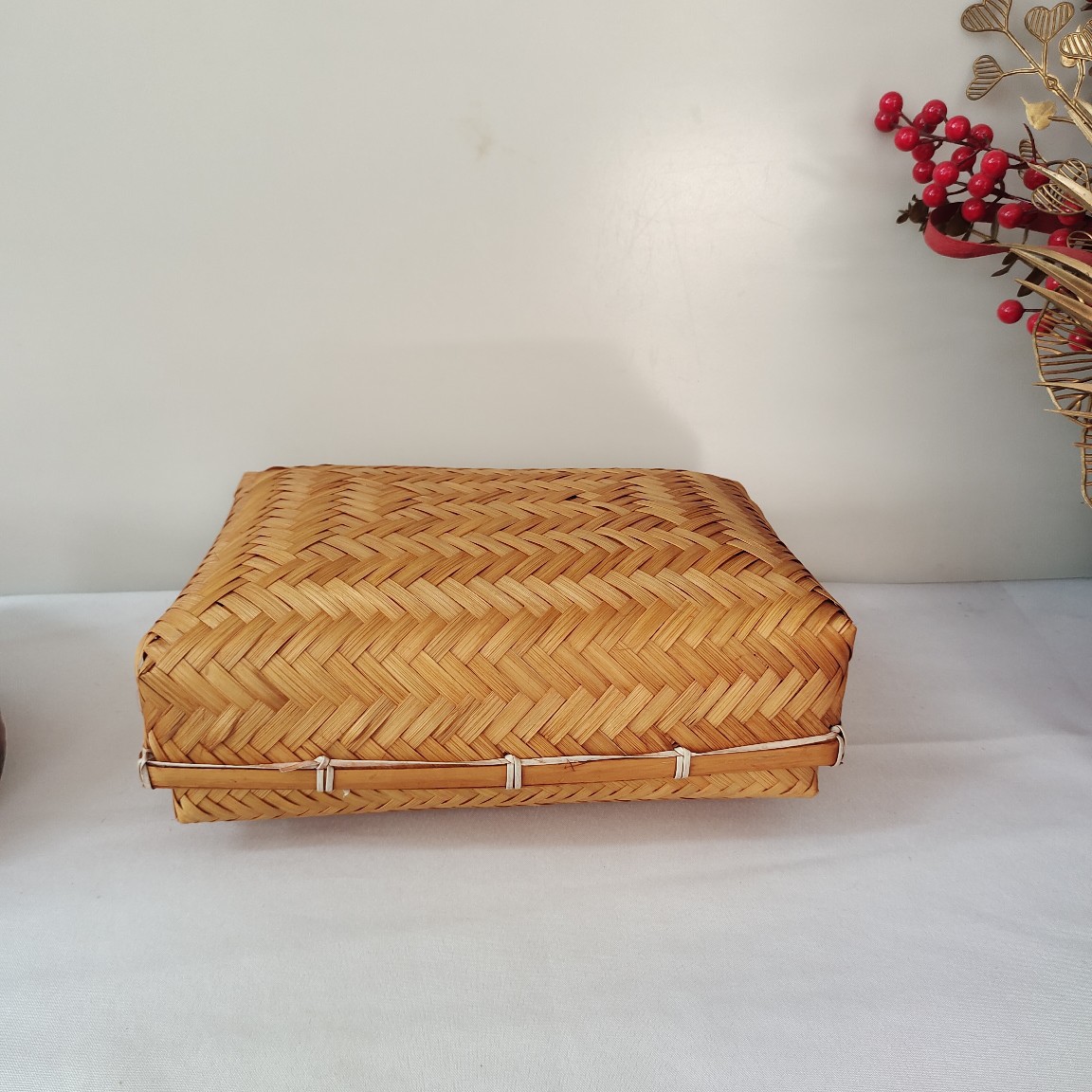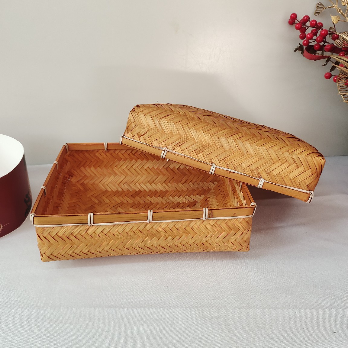 元旦の贈り物 竹製の箱 手作り竹編みギフトボックス 包装箱 お土産ギフト 天蓋付き