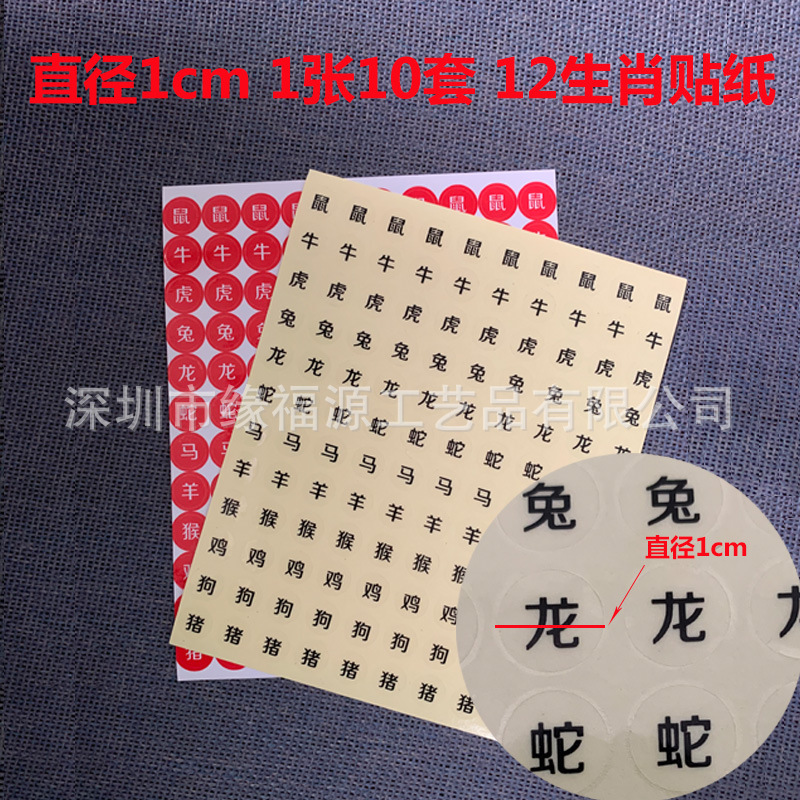 12生肖ラベルシール1cm円形透明生肖ラベルシール1枚に10セットの生肖がある