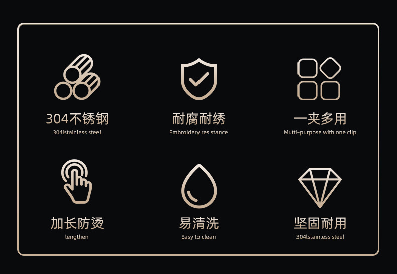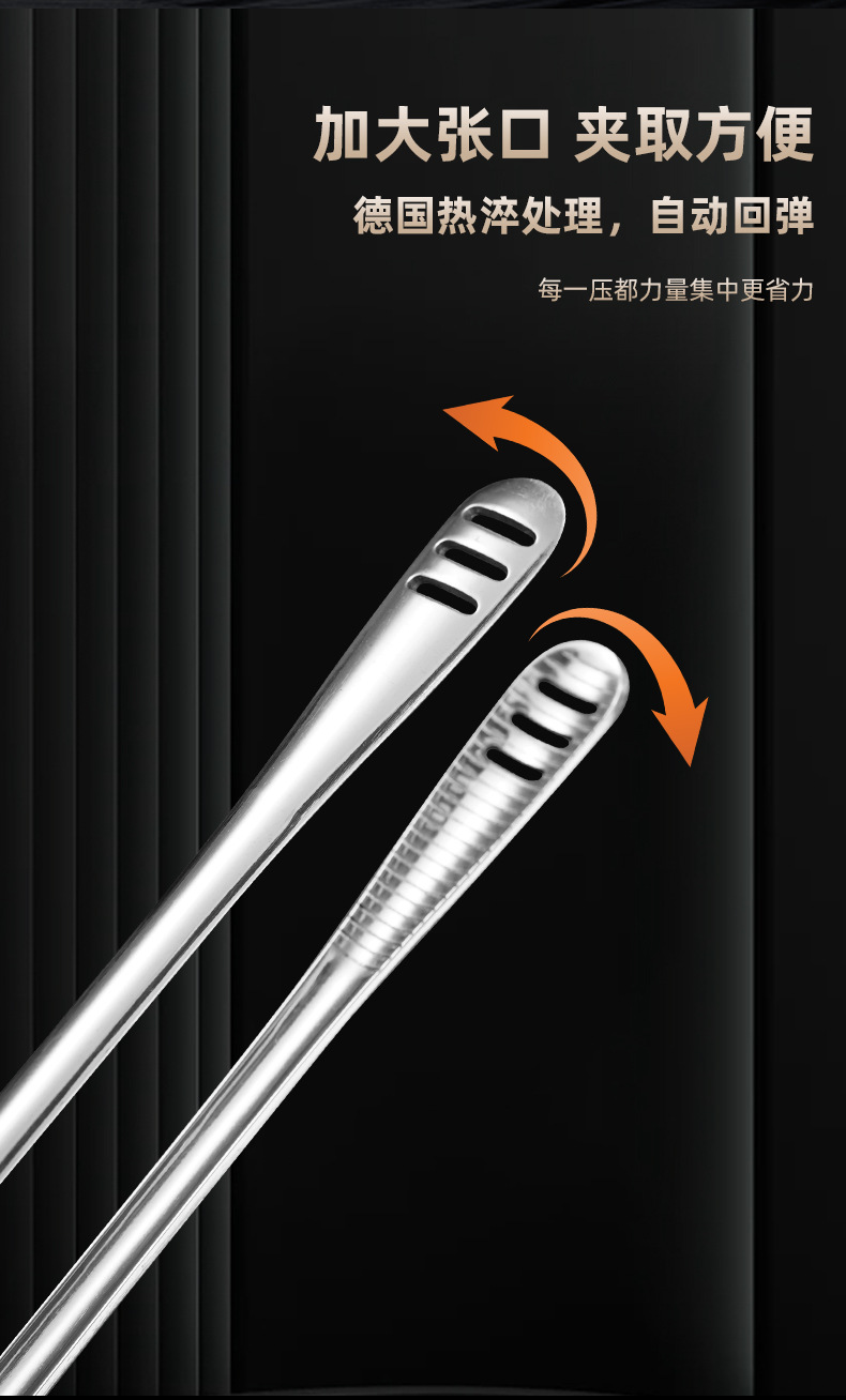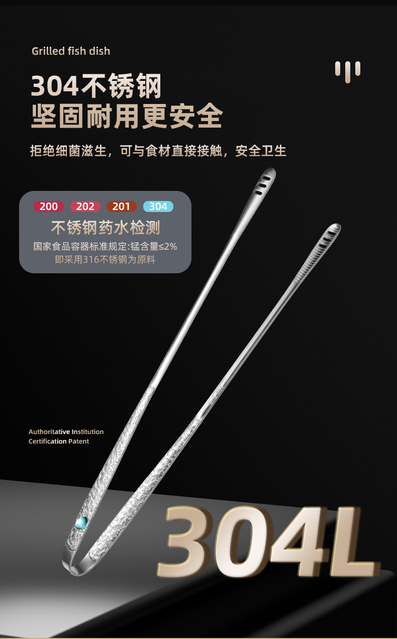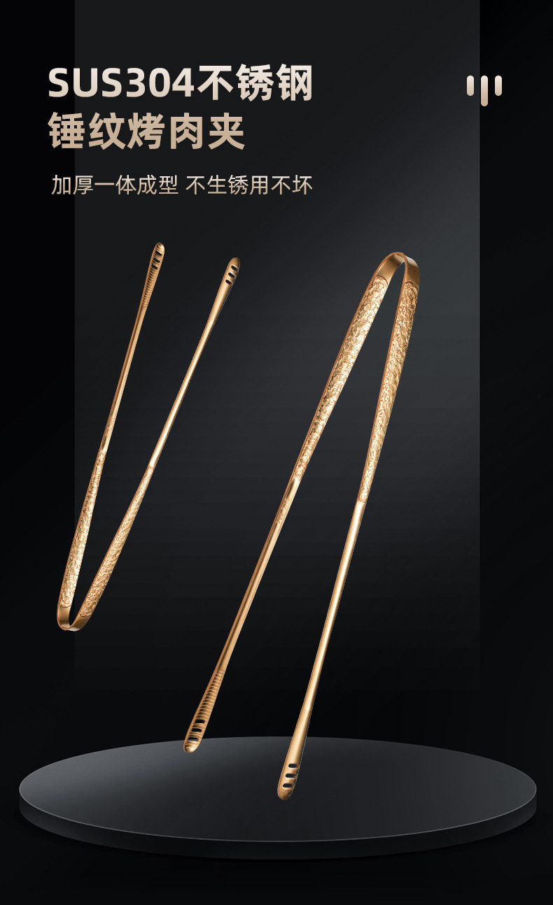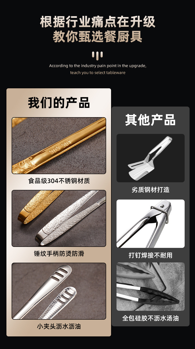 新しい304ステンレスのドリルの滑り止め焼肉の挟みは金色のステーキのバイキングの韓国式パンの食品の挟みを延長します。