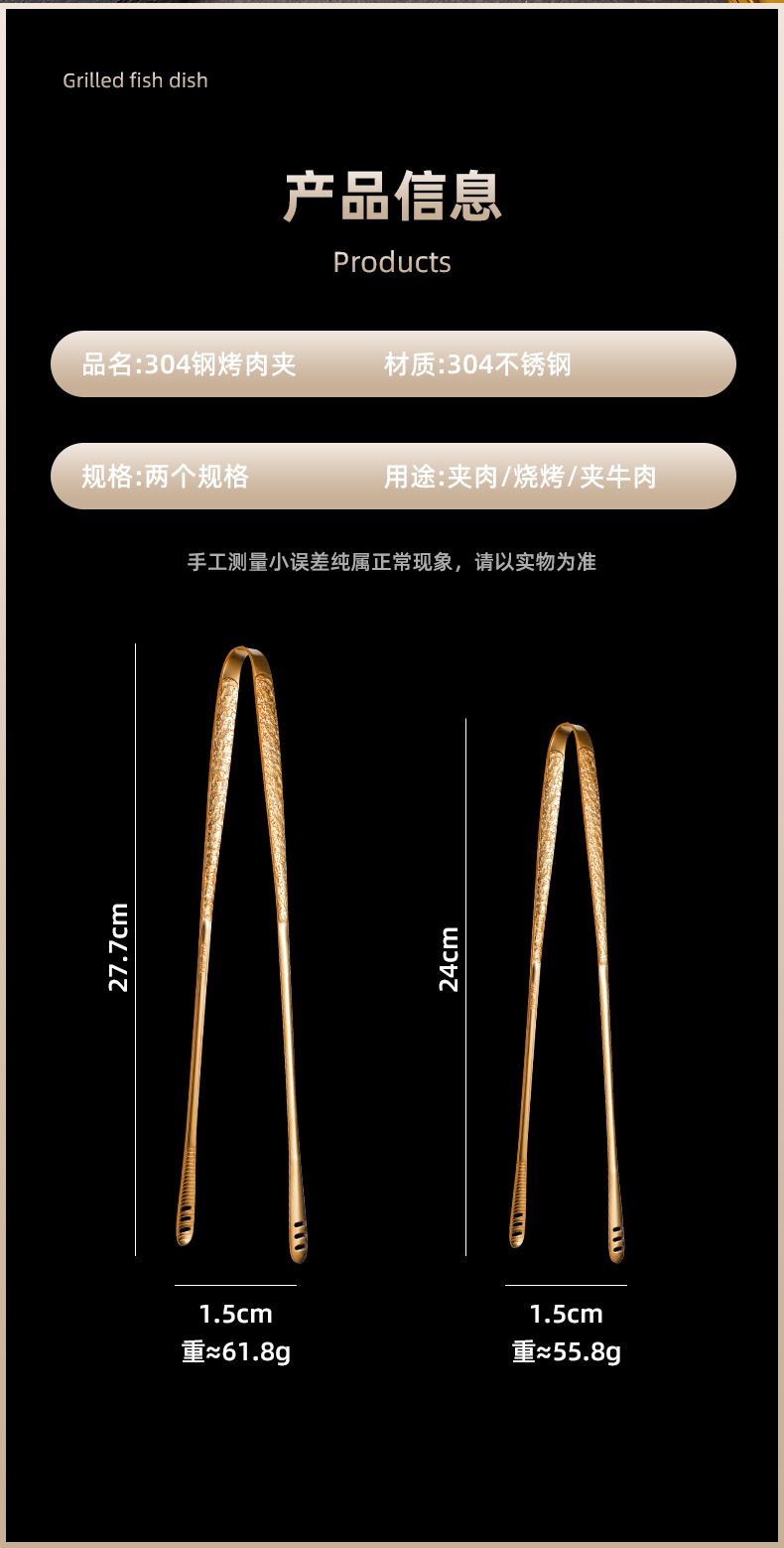 304ステンレス韓国式焼肉クリップバーベキュー食品ステーキ韓国料理バイキング小クリップキッチン家庭用
