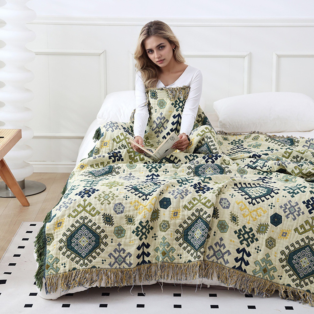 国境を越えた異国の風情純綿五層ガーゼ毛布タオル夏毛布ソファー毛布昼寝ソファー毛布