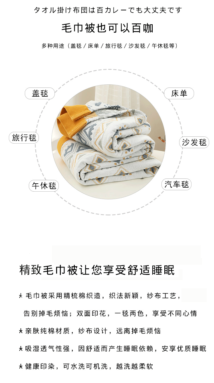 日本式四段竹綿タオル布団一人二人四季ガーゼタオル毛布竹綿毛布学生快適カバー