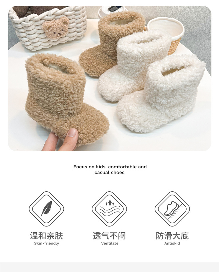 2024子供の雪地靴の女の子の毛の靴の子供の靴のショートブーツの厚い毛の保温の綿の靴の赤ちゃんのブーツの冬