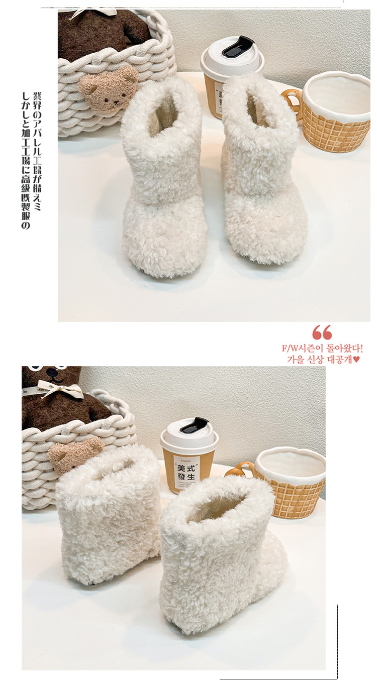 韓国版冬の女の子の靴とベルベットの保温スリーブの毛のショートブーツのカジュアルな柔らかい底の子供の巻き毛の雪の靴