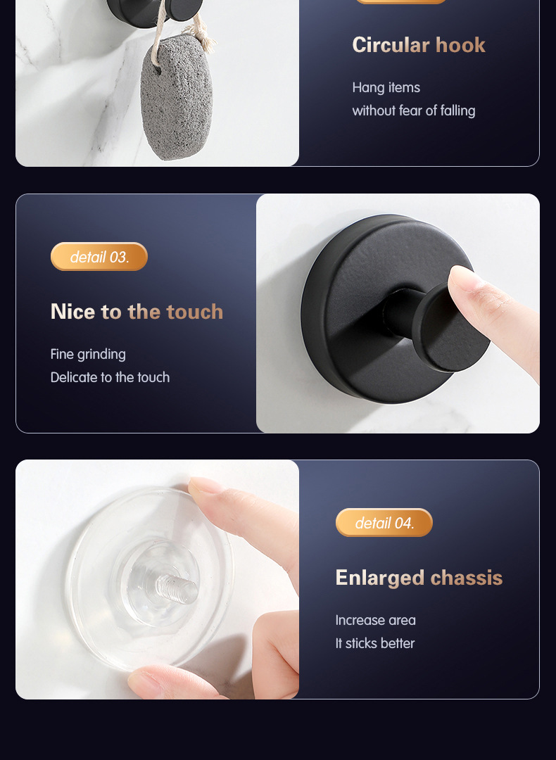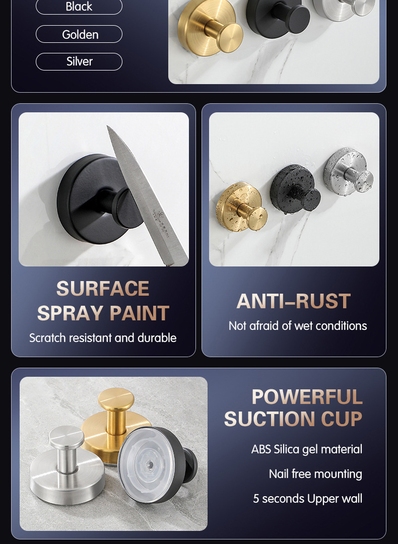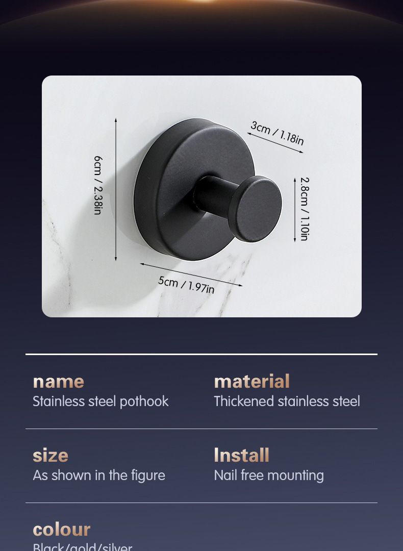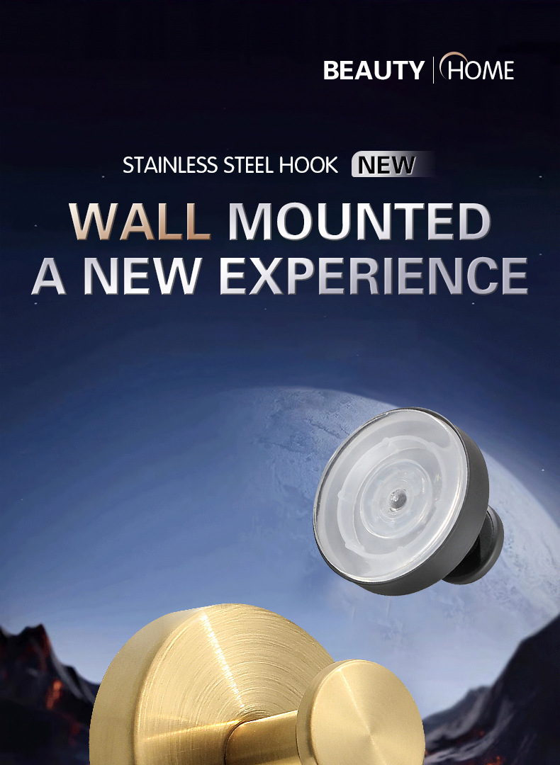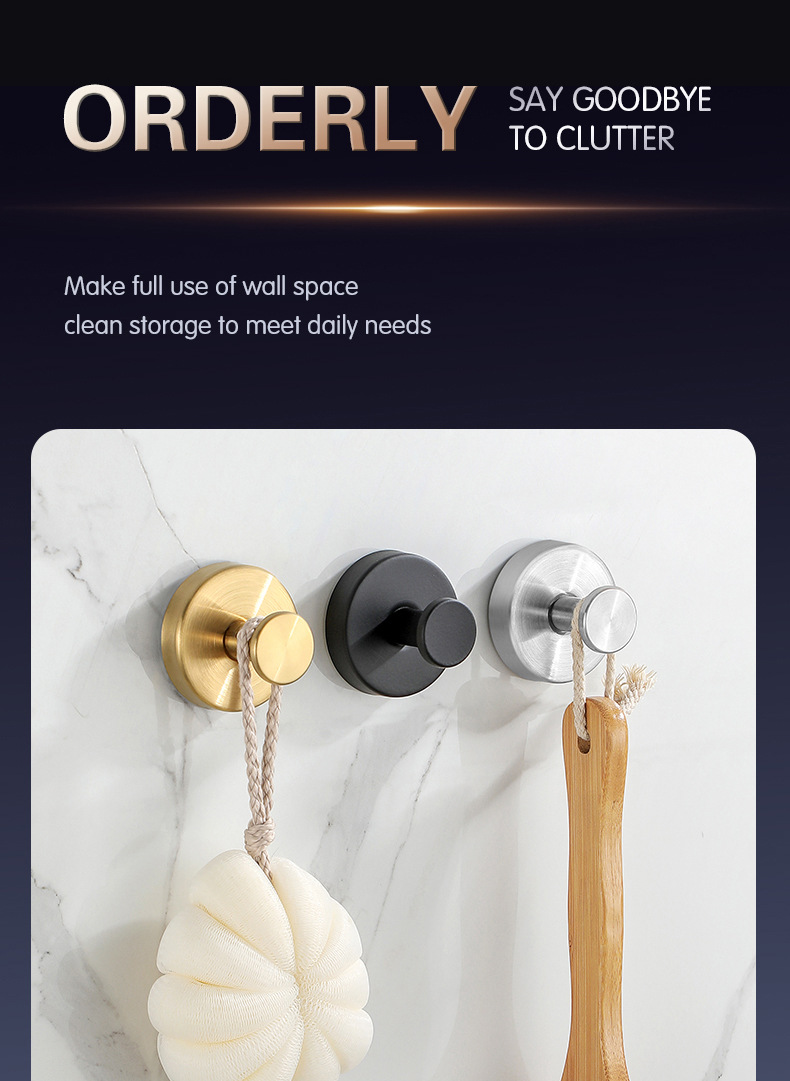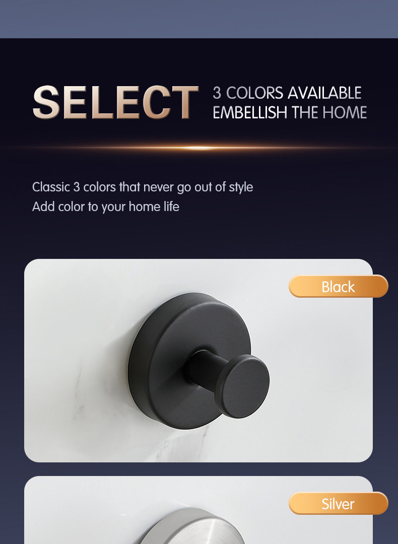 跨境挂钩不锈钢单钩酒店浴室卫生间壁挂式打孔衣帽钩挂钩黑色衣钩